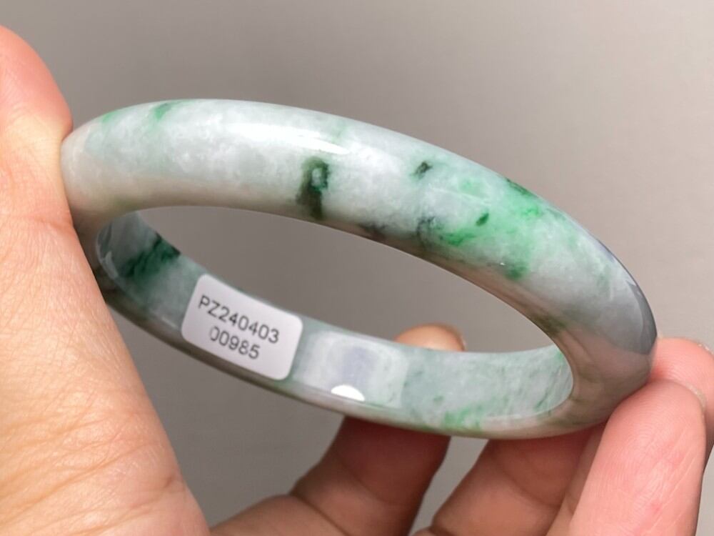 BG5-7 美品 花緑 55.8MM 真ん丸 ミャンマー産 天然本翡翠 バングル