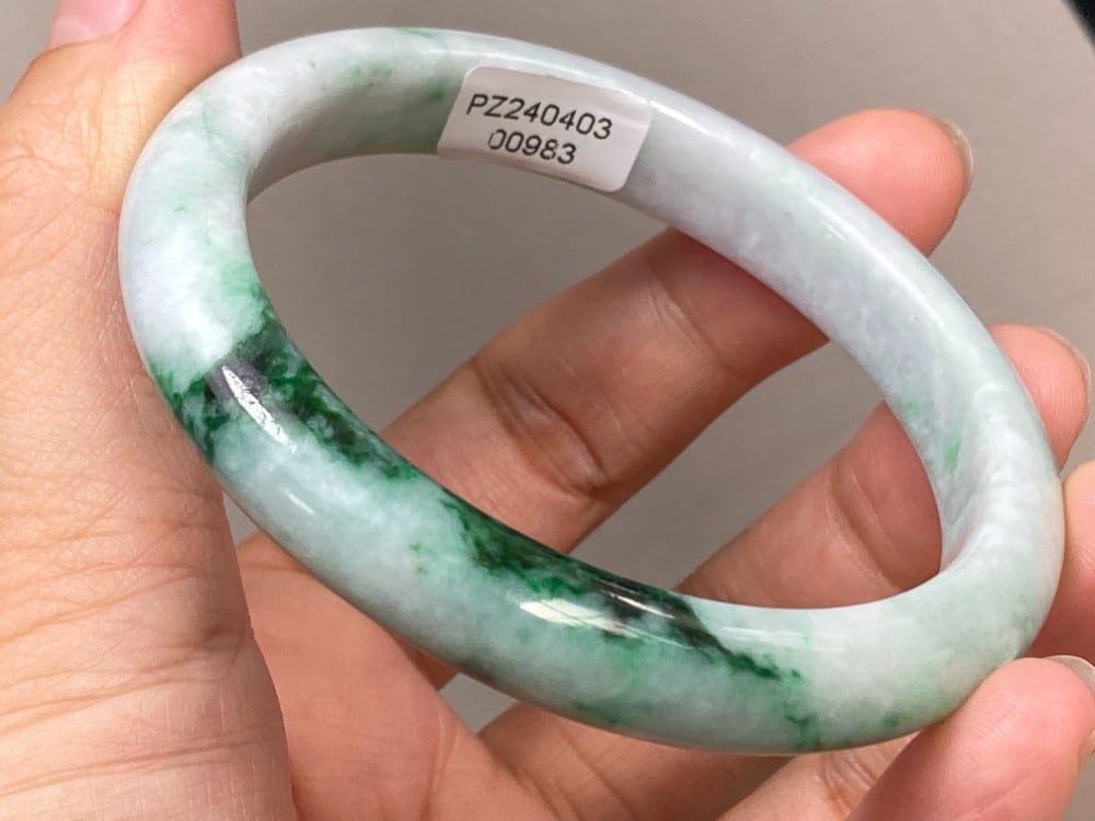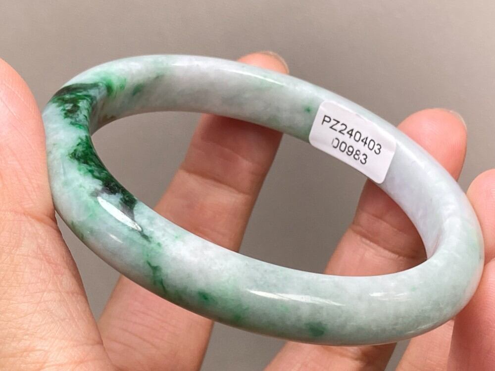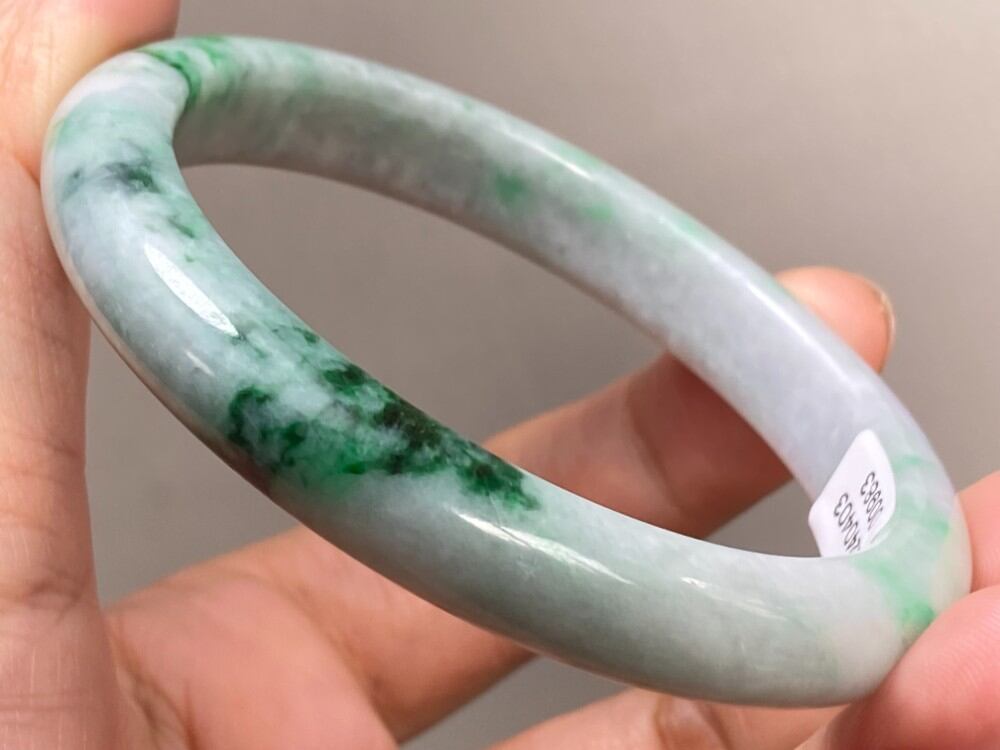 BG5-11 美品 花緑 55.9MM 真ん丸 ミャンマー産 天然本翡翠 バングル