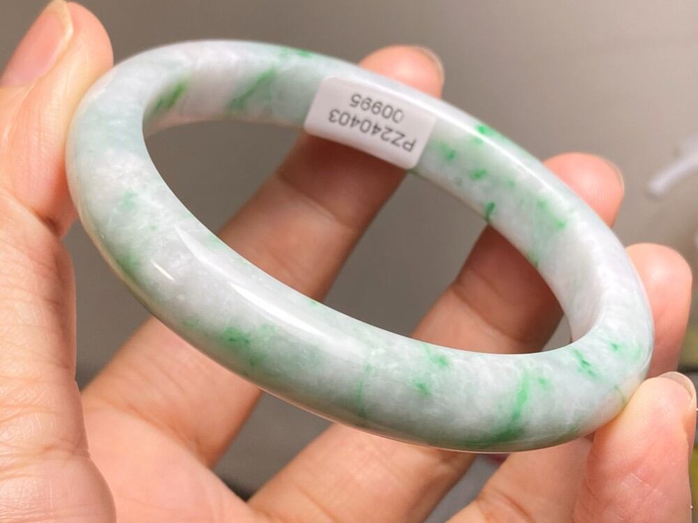 BG5-15 美品 花緑 55.8MM 真ん丸 ミャンマー産 天然本翡翠 バングル