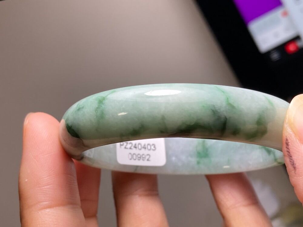 BG5-17 美品 花緑 50.0MM 楕円 貴妃 ミャンマー産 天然本翡翠 バングル