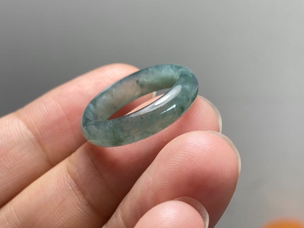 L6-07 氷灰青緑 15.5号 天然グアテマラ産 A貨 本翡翠 くりぬき リング