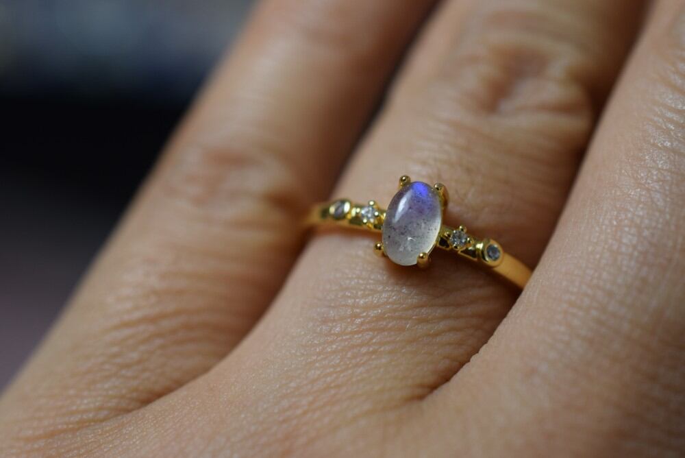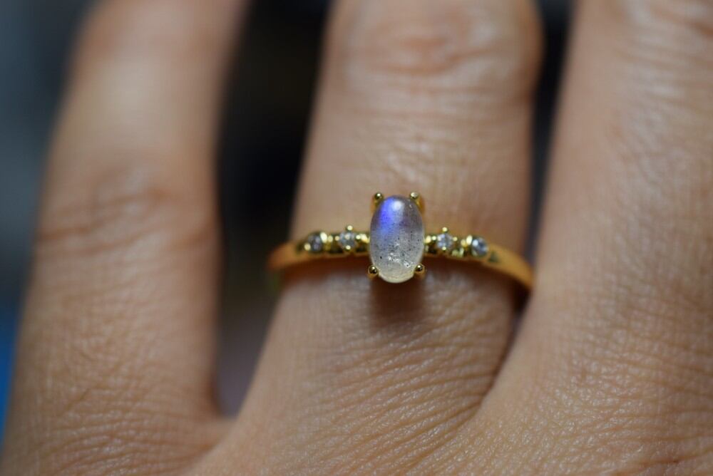 SR4-106 美品 天然 ラブラドライト リング 指輪 フリーサイズ 金属アレルギー対応