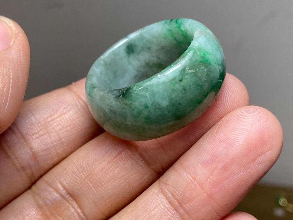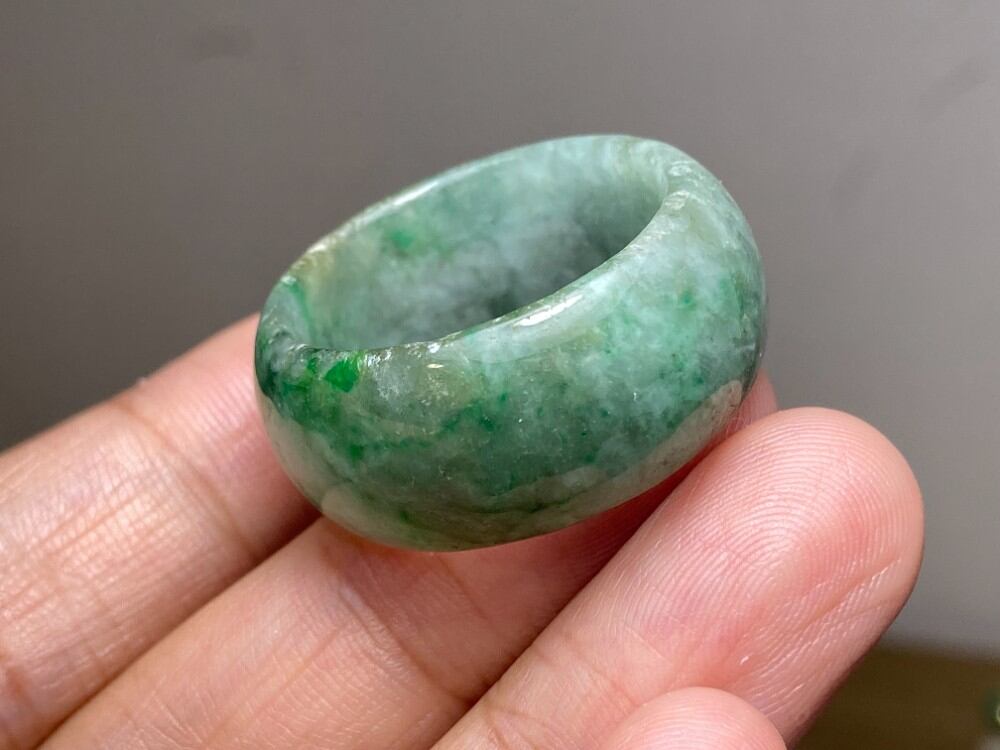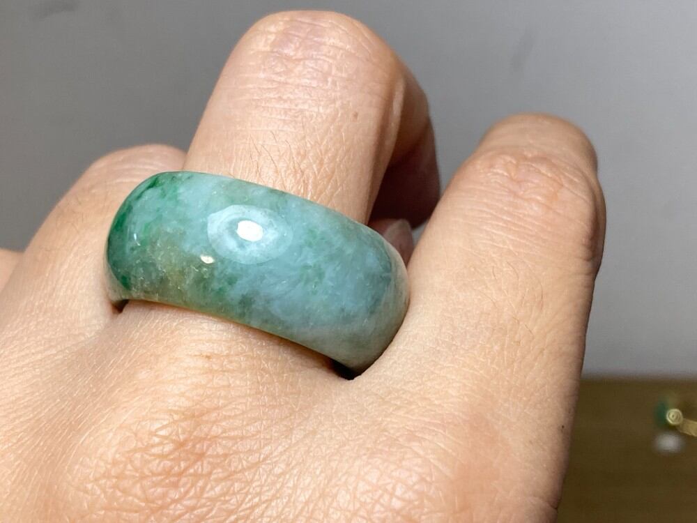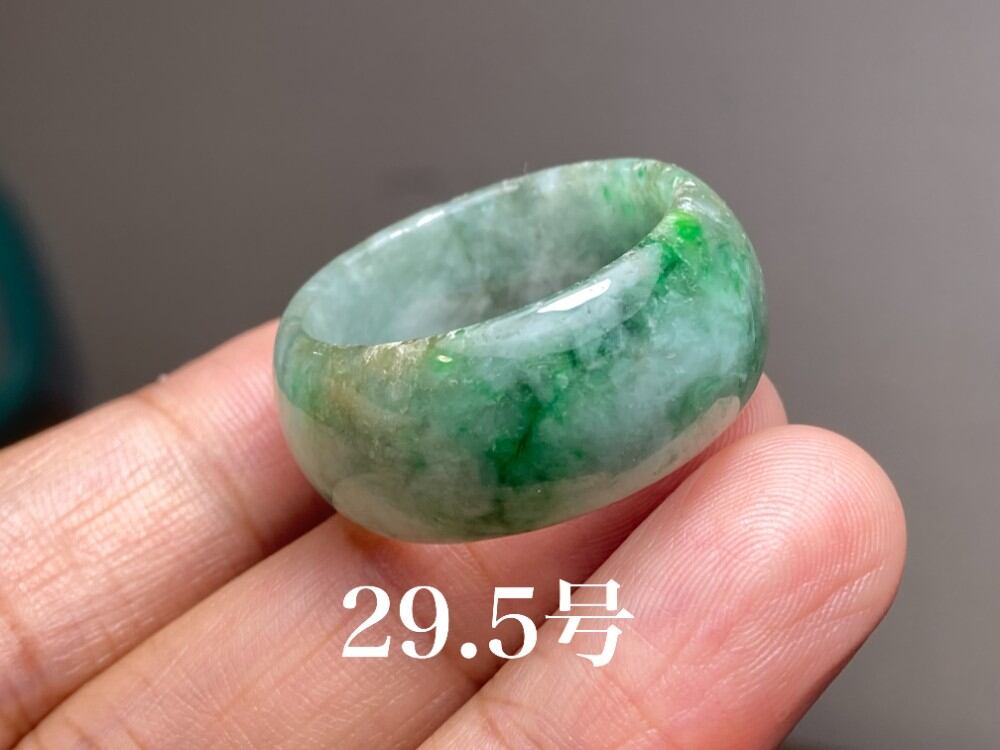 L6-34 ビッグサイズ 花緑 29.5号 ミャンマー産天然 A貨 本翡翠 くりぬき リング 広幅