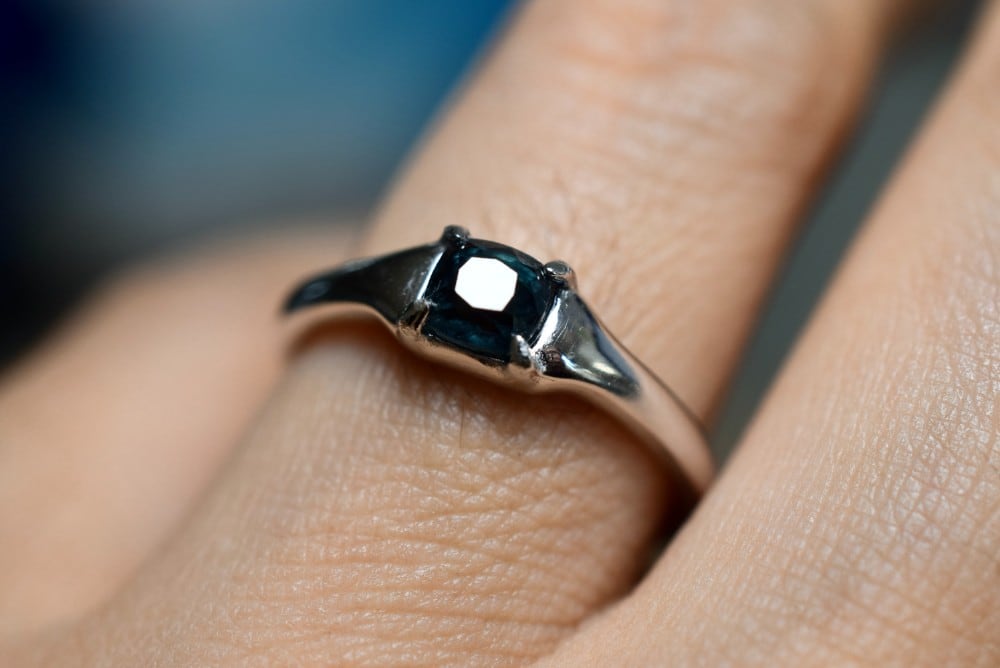SR4-111 シルバー 宝石質 珍しい高貴なピーコックブルー 孔雀青 スピネル ミャンマー産 フリーサイズ 指輪 金属アレルギー対応