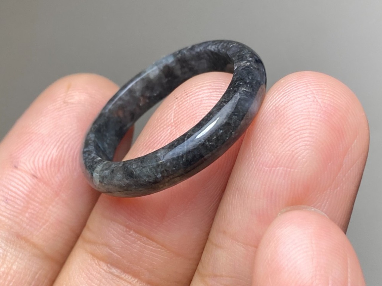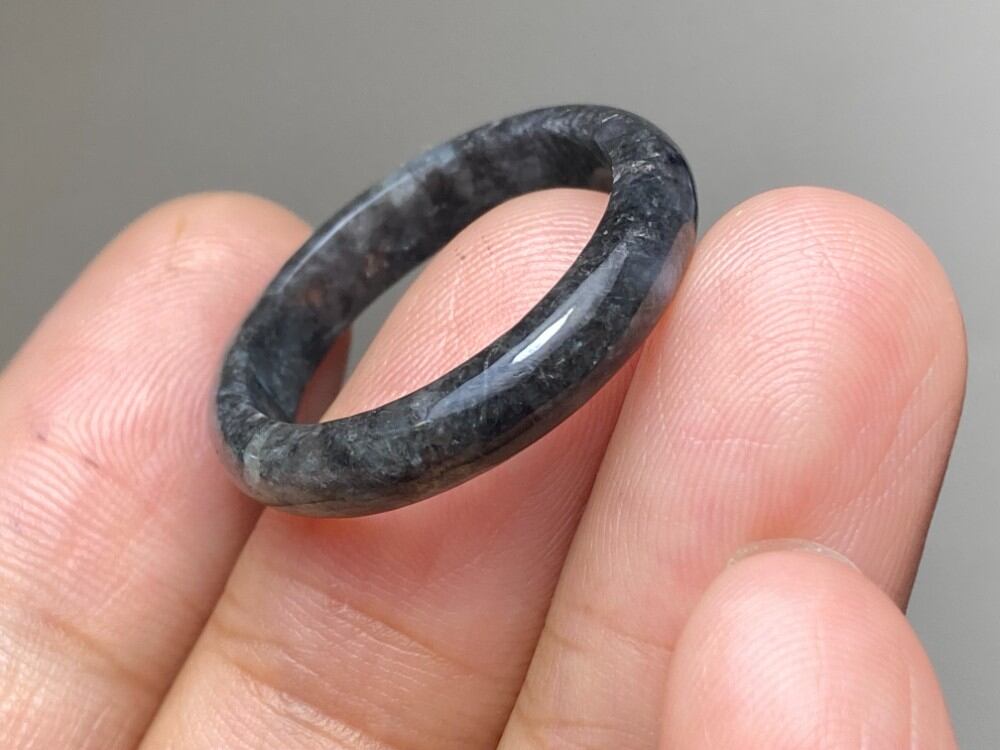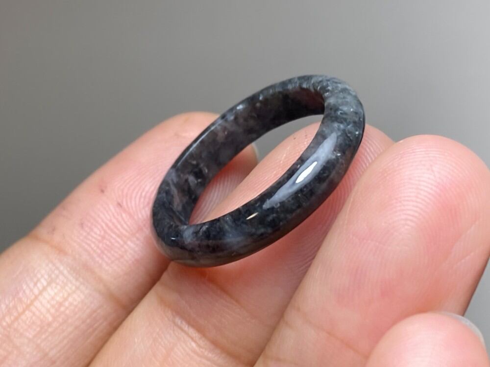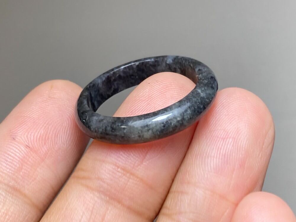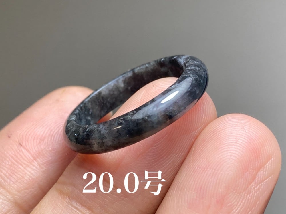 L6-45 美品 黒翡翠 20.0号 ミャンマー産天然 A貨 本翡翠 くりぬき リング