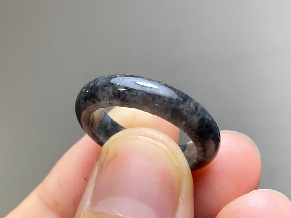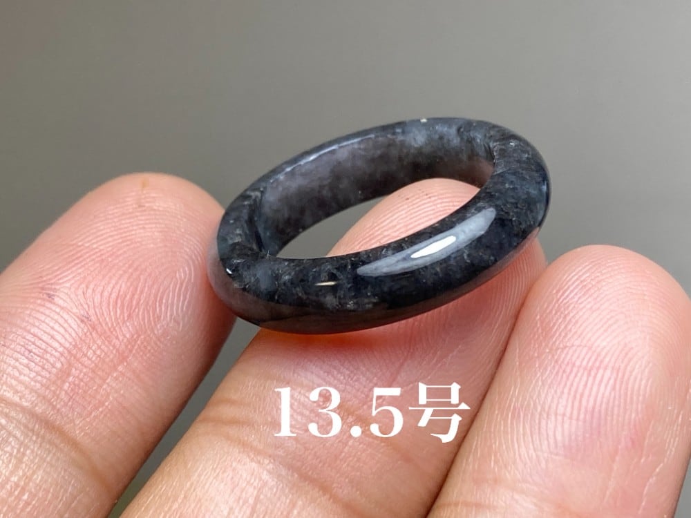 L6-44 美品 黒翡翠 13.5号 ミャンマー産天然 A貨 本翡翠 くりぬき リング