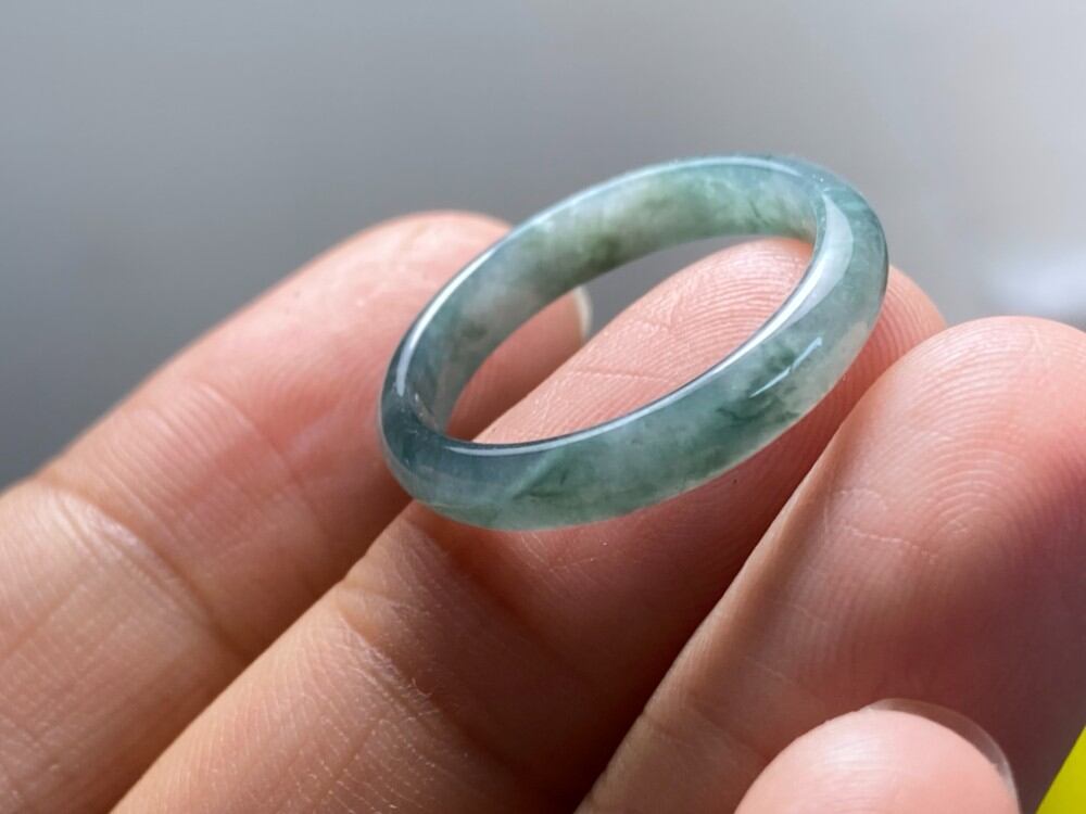 L6-47 美品 灰藍 16.5号 天然グアテマラ産 A貨 本翡翠 くりぬき リング