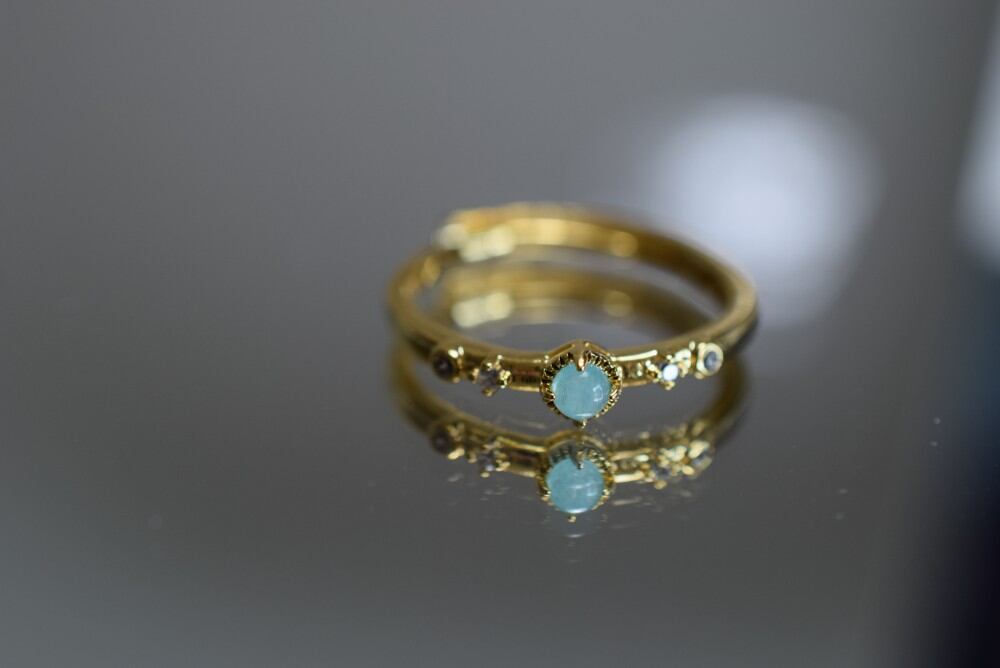 SR4-116 美品 ミニ アマゾナイト 天河石 リング 指輪 シンプル フリーサイズ 金属アレルギー対応