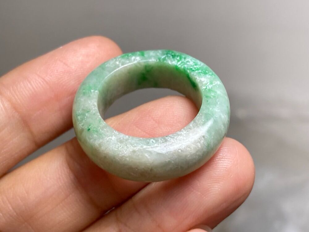 L6-80 一点物 花緑 17.0号 ミャンマー産天然 A貨 本翡翠 くりぬき リング