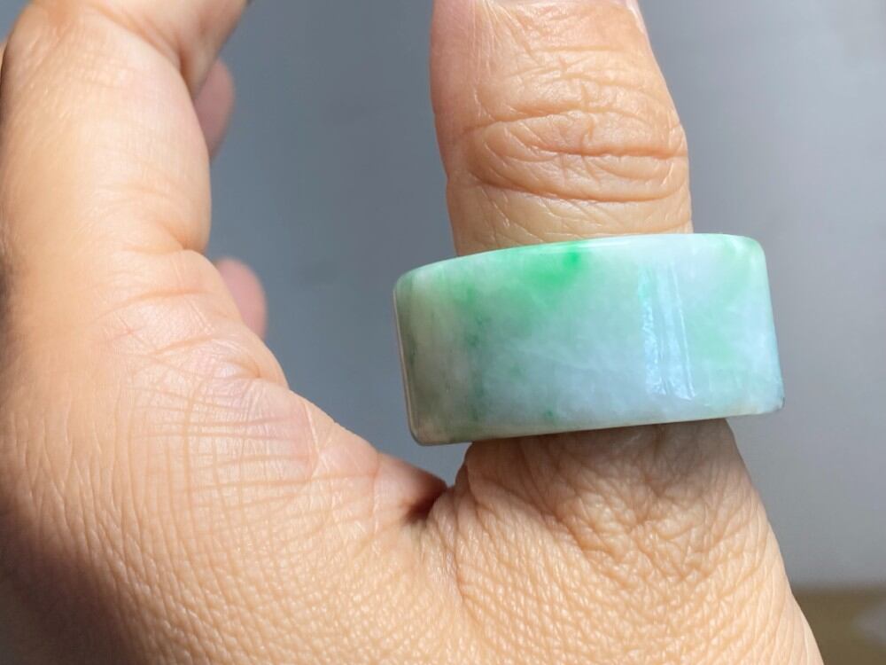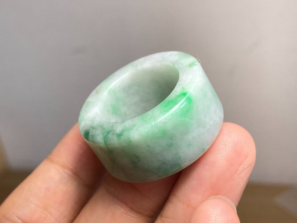 L6-102 一点物 花緑 22.5号 ミャンマー産天然 A貨 本翡翠 くりぬき リング