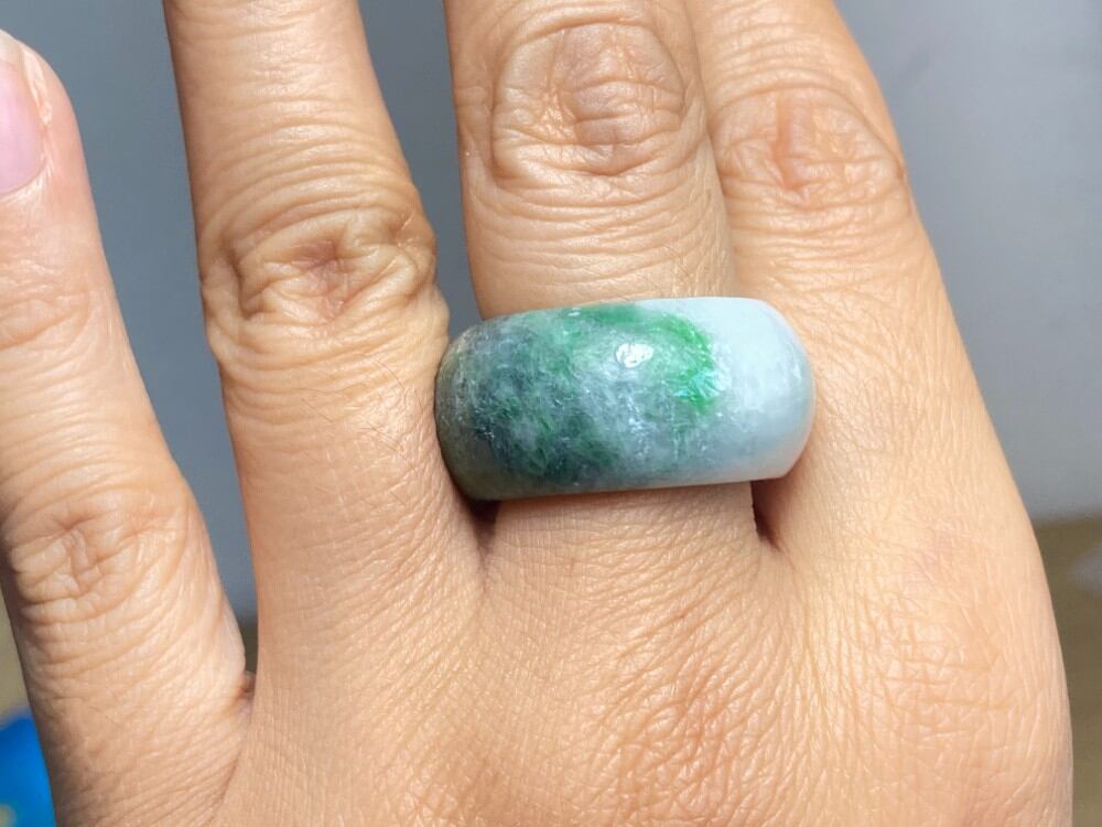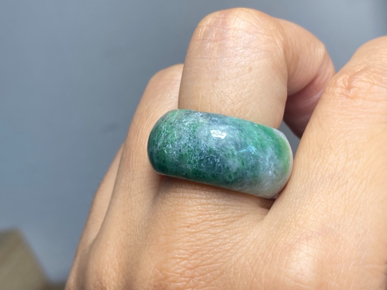 L6-100 一点物 花緑 16.5号 ミャンマー産天然 A貨 本翡翠 くりぬき リング