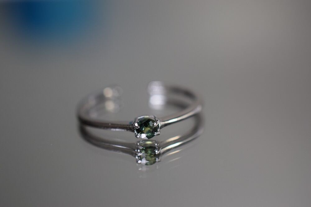 SR4-130 シルバー 天然 珍しい高貴なピーコックブルー 孔雀青 サファイア リング 指輪 フリーサイズ 金属アレルギー対応