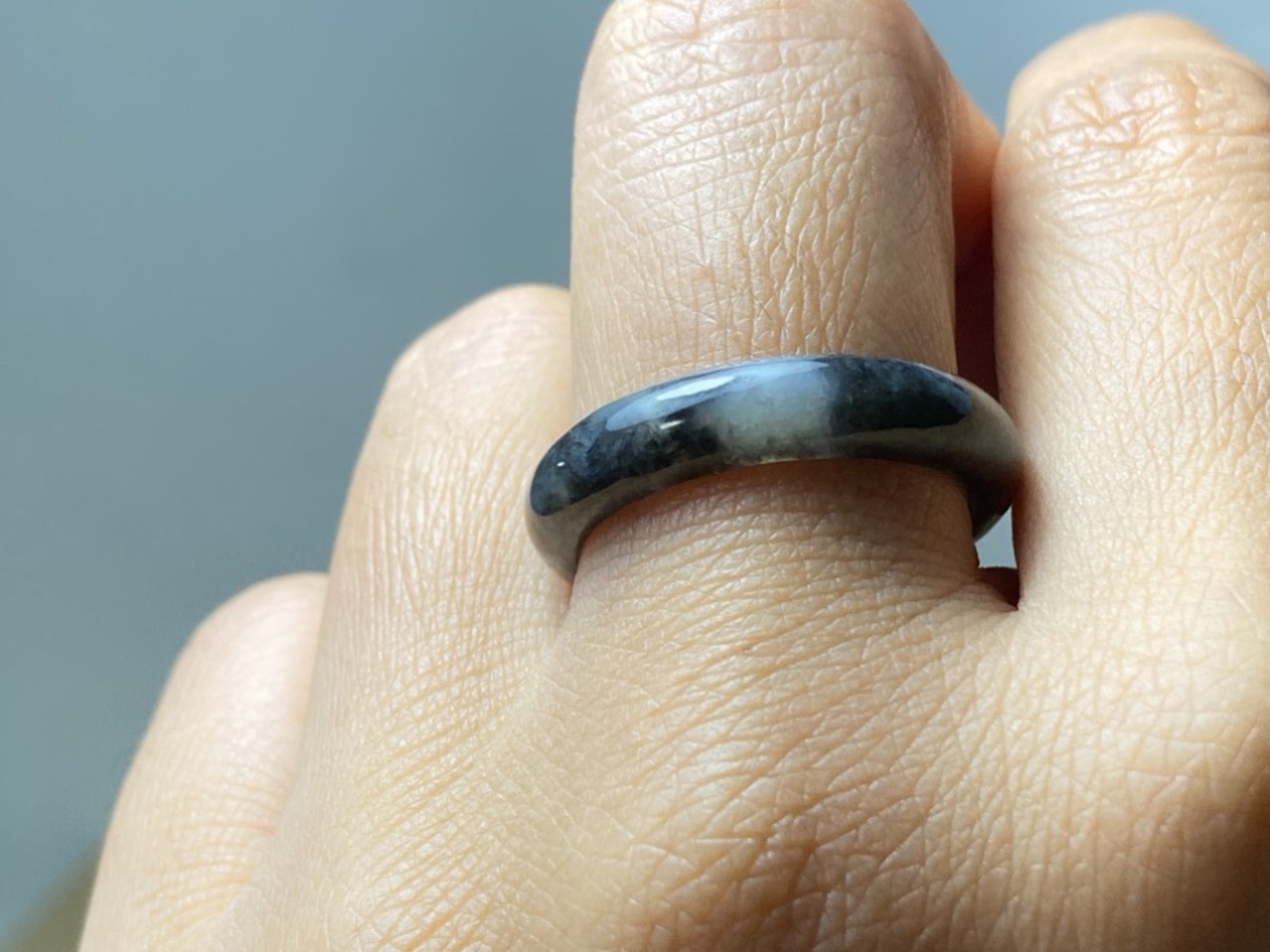 L6-109 美品 黒翡翠 19.5号 ミャンマー産天然 A貨 本翡翠 くりぬき リング