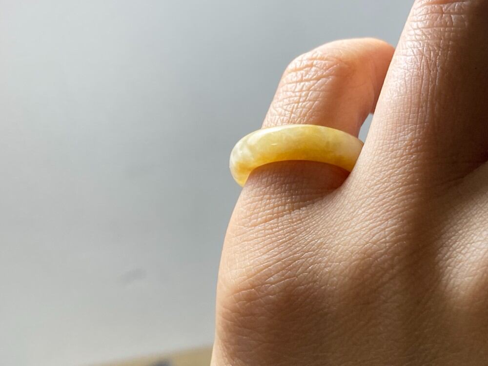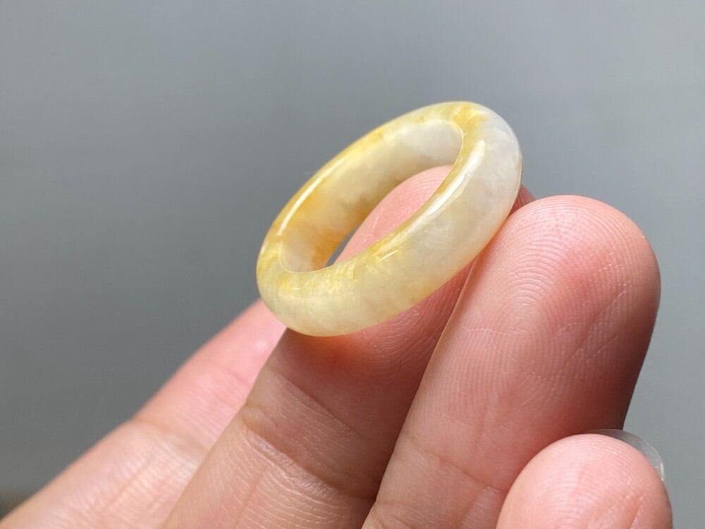 L6-112 美品 黄翡翠 11.0号 ミャンマー産天然 A貨 本翡翠 くりぬき リング