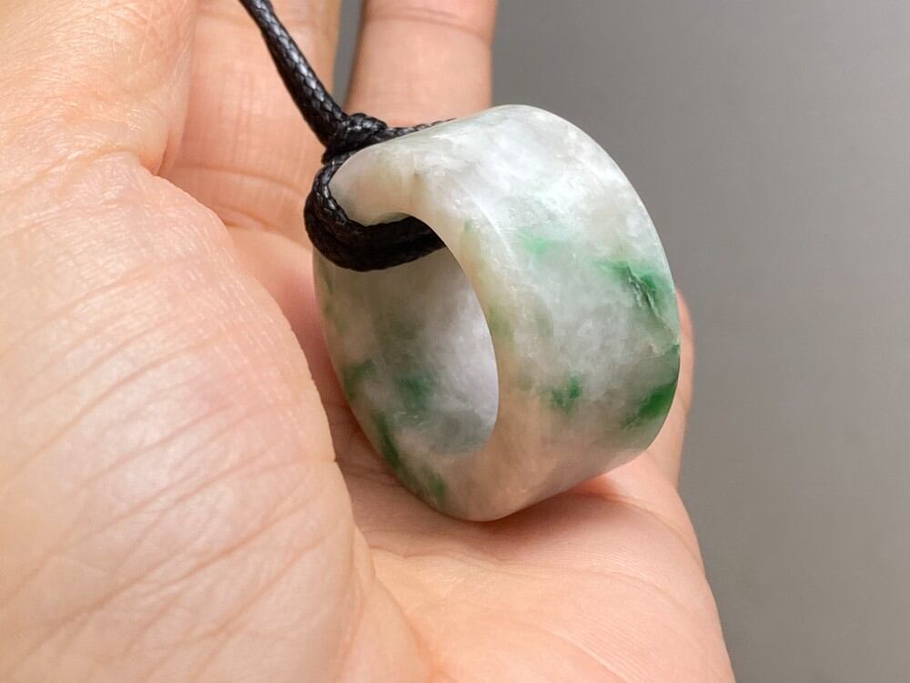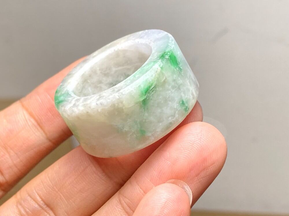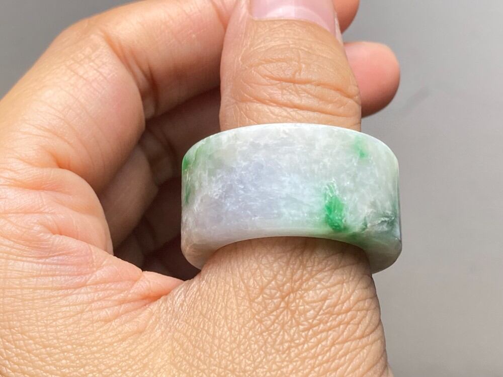 L6-126 一点物 白底花緑 薄ラベンダー 22.5号 ミャンマー産天然 A貨 本翡翠 くりぬき リング ペンダント