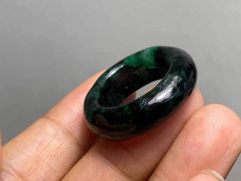 L6-129 一点物 黒緑 17.0号 ミャンマー産天然 A貨 本翡翠 くりぬき リング