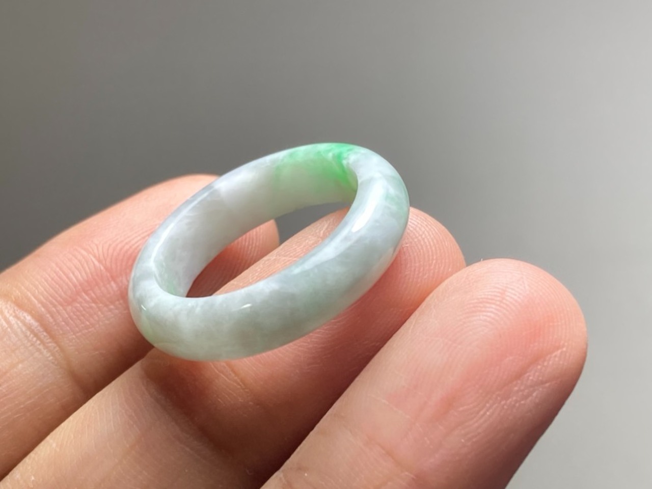 L6-136 美品 白底陽緑 16.5号 ミャンマー産天然 A貨 本翡翠 くりぬき リング