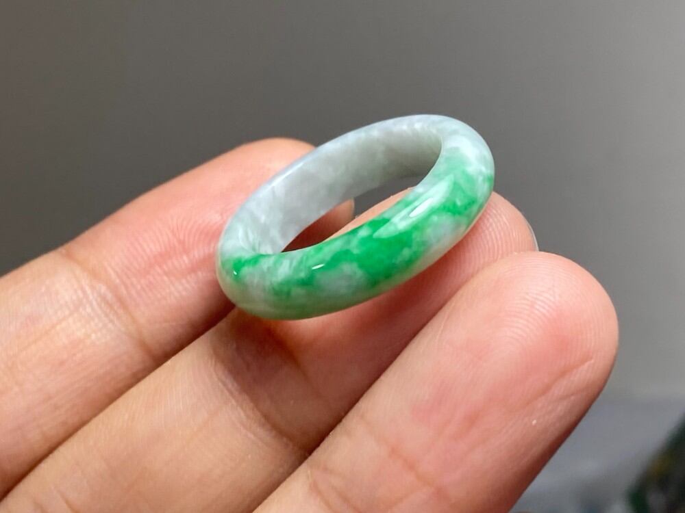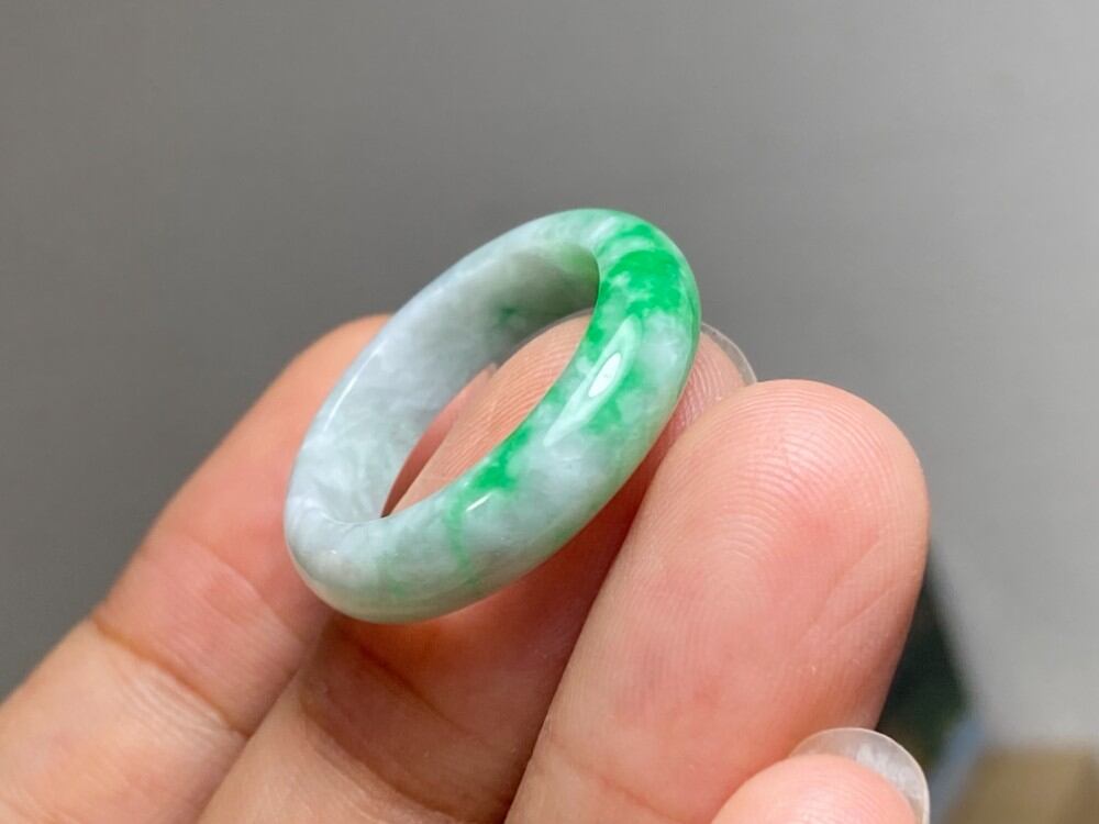 L6-140 美品 白底陽緑 16.5号 ミャンマー産天然 A貨 本翡翠 くりぬき リング