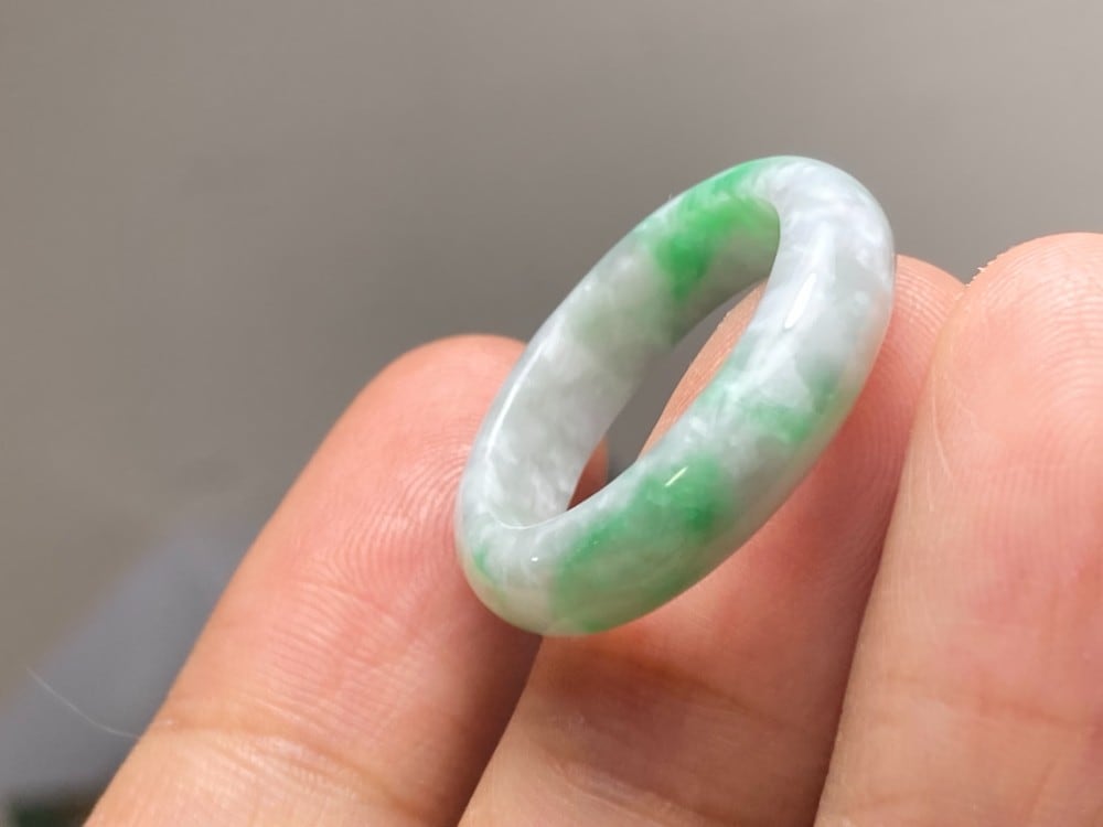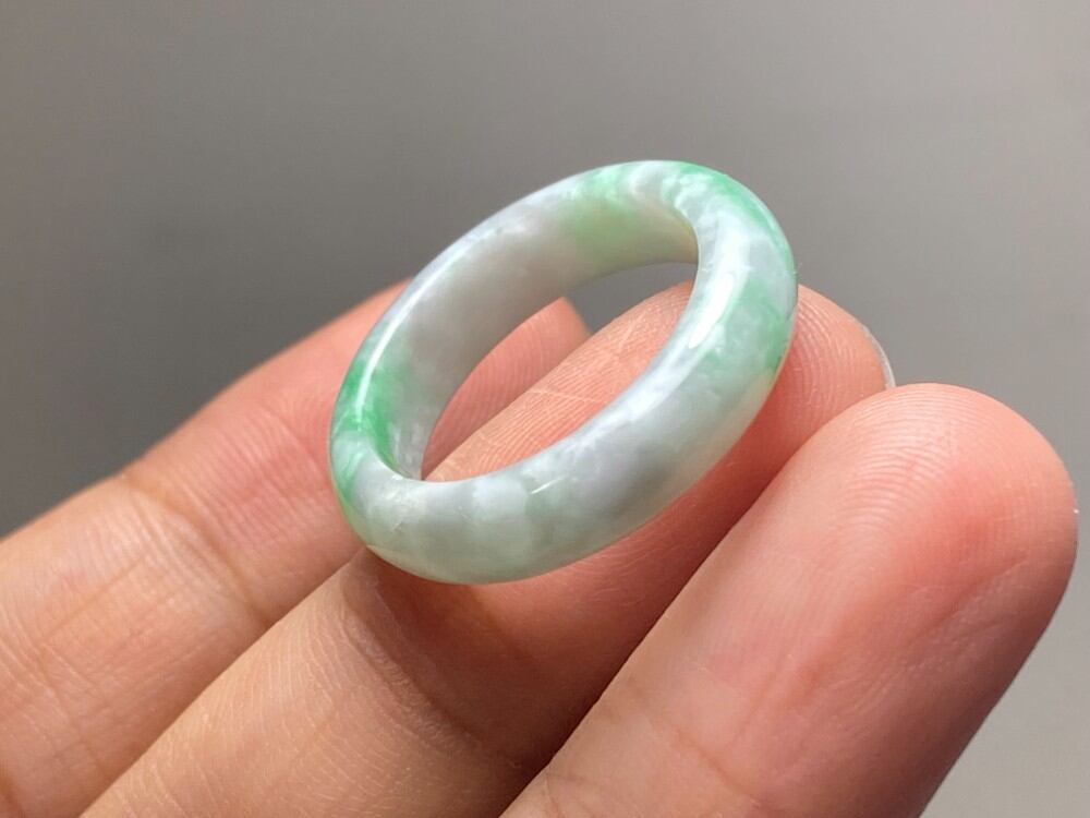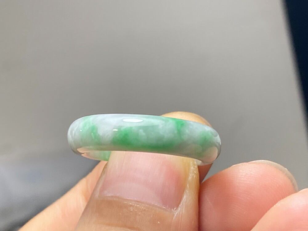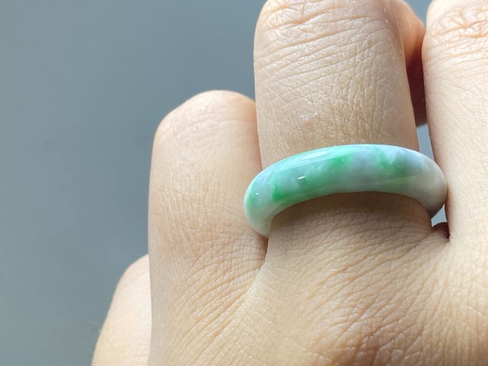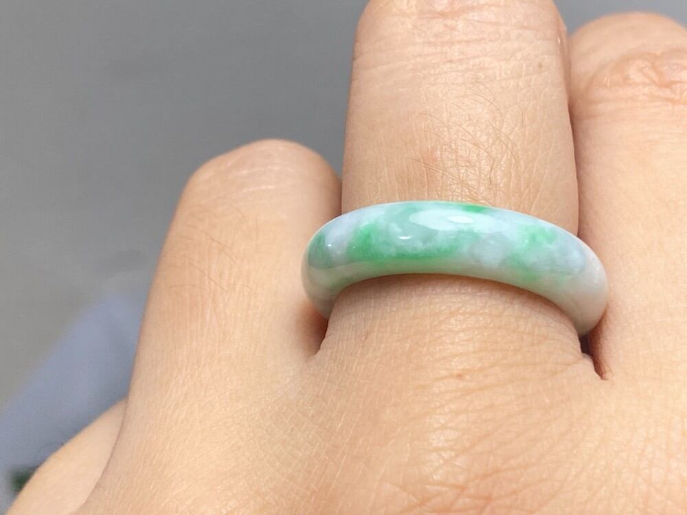 L6-138 美品 白底陽緑 16.5号 ミャンマー産天然 A貨 本翡翠 くりぬき リング