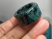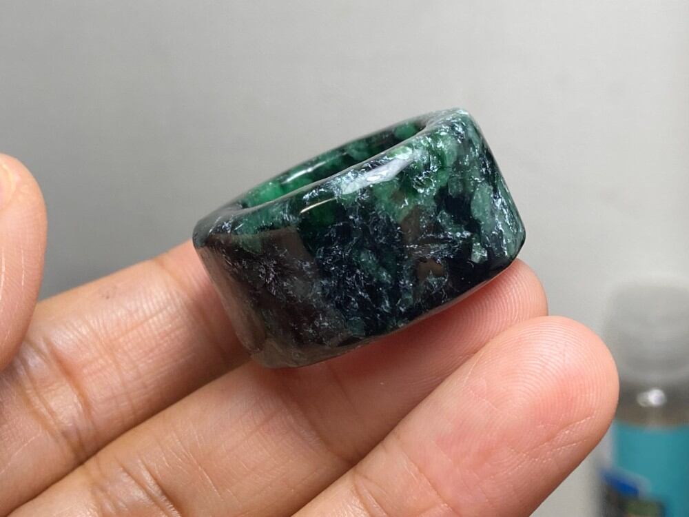 L6-166 一点物 黒緑 22.5号 ミャンマー産天然 A貨 本翡翠 くりぬき リング ペンダント