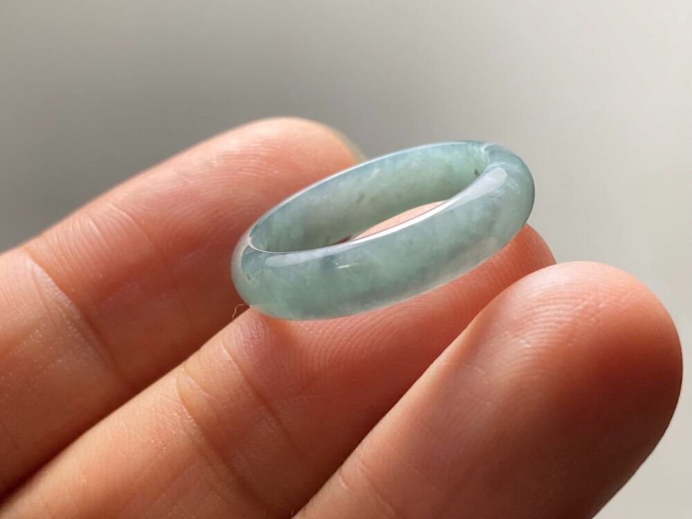 L6-173 薄灰藍 13.5号 天然グアテマラ産 A貨 本翡翠 くりぬき リング