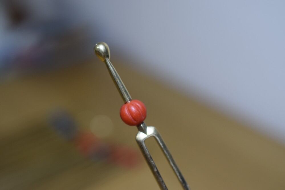 KZ4-25 珊瑚珠色 簪 一点物 小玉 七宝るり玉 とんぼ玉 七宝瑠璃玉 昭和風 二本軸 定番タイプ かんざし