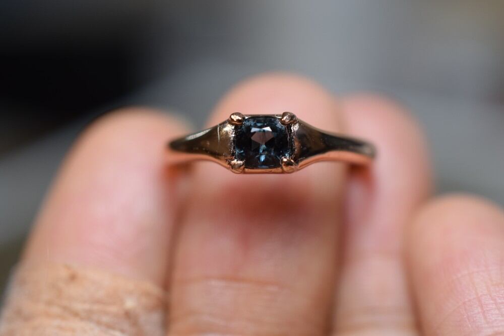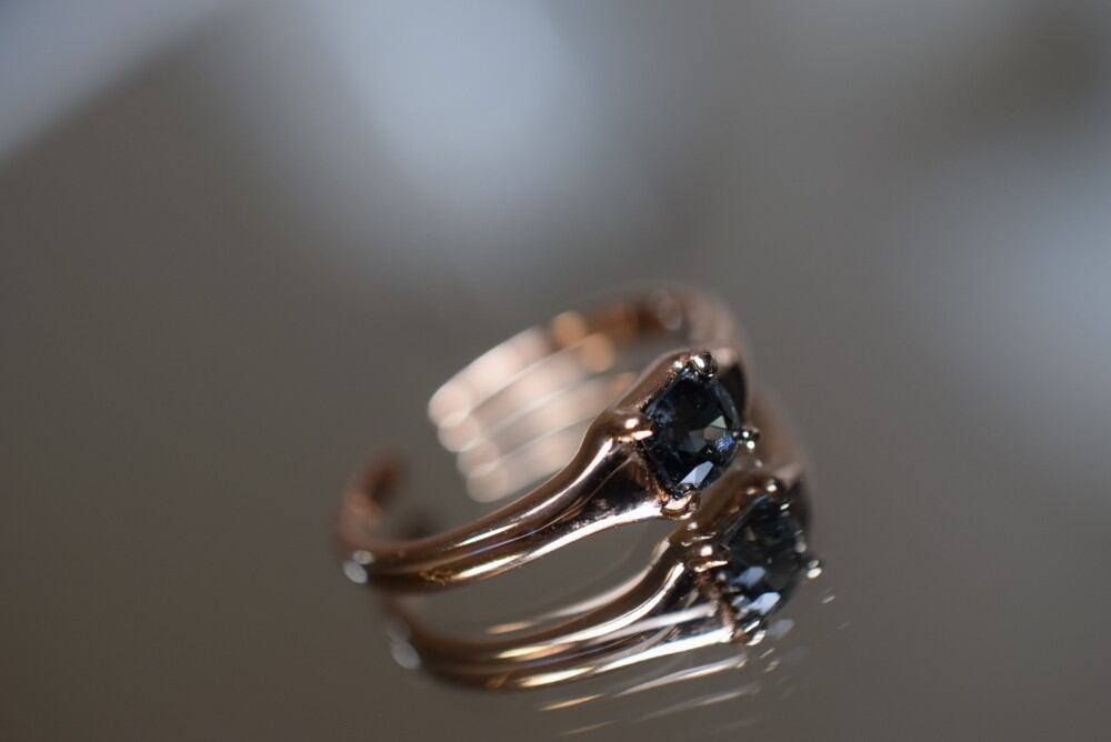 SR4-156 宝石質 珍しい高貴なピーコックブルー 孔雀青 スピネル リング ミャンマー産 フリーサイズ 指輪 金属アレルギー対応