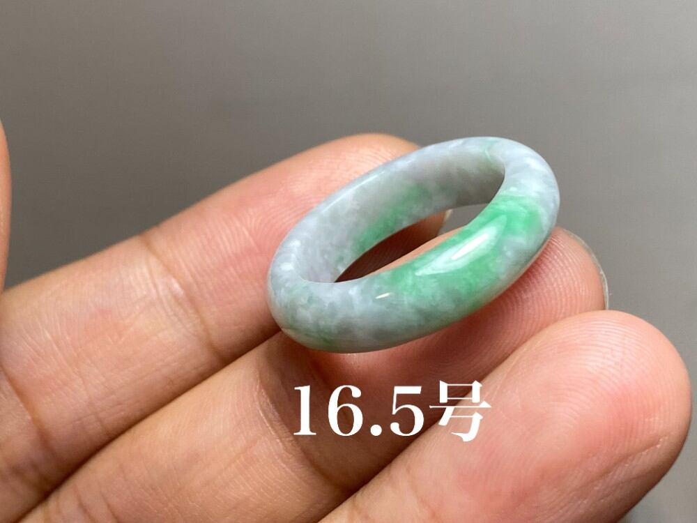 L6-216 美品 白底陽緑 16.5号 ミャンマー産天然 A貨 本翡翠 くりぬき リング