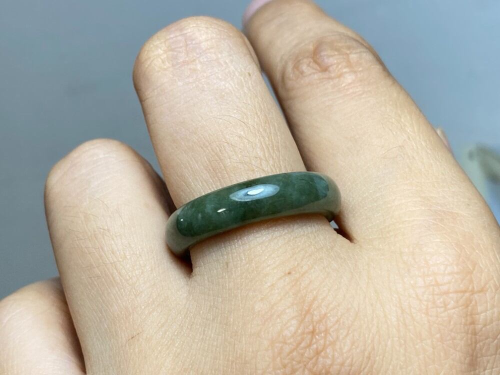 L6-222 美品 海藻 20.5号 ミャンマー産天然 A貨 本翡翠 くりぬき リング