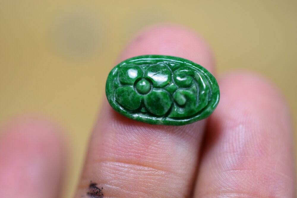 手彫り 花型 ミャンマー産 黄緑 本翡翠( 硬玉 、ジェダイト、含浸処理なし