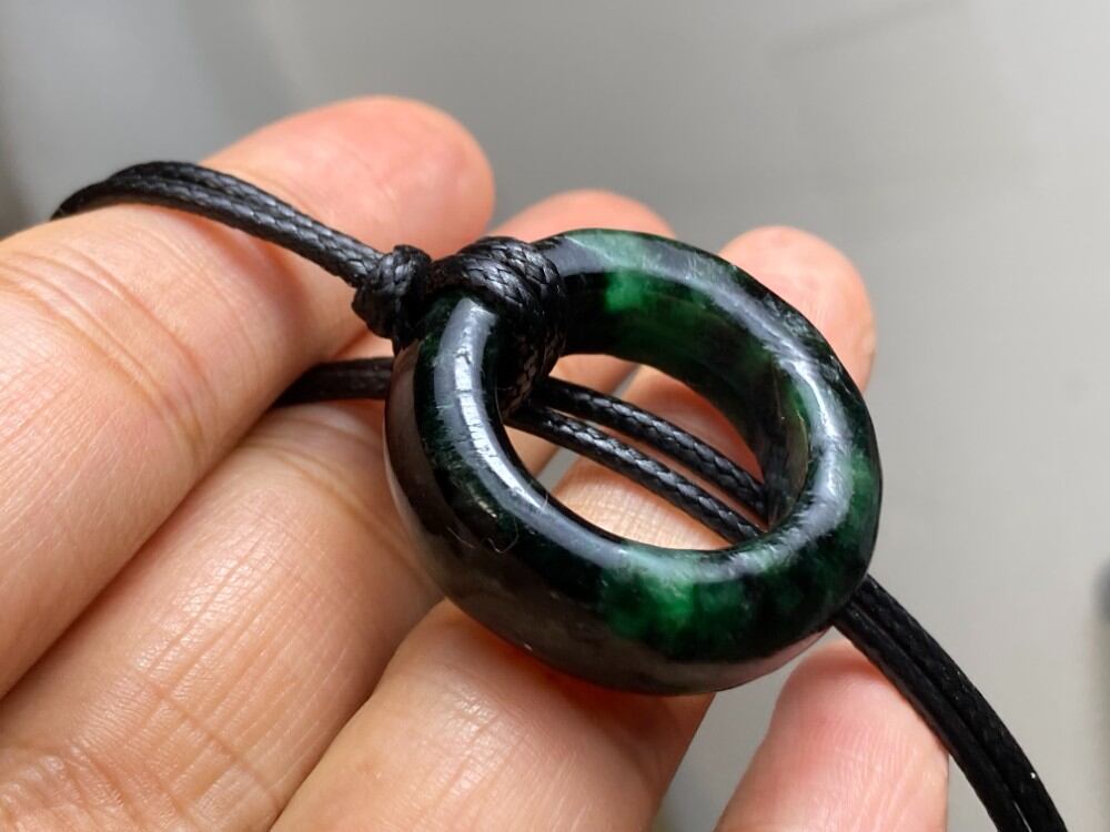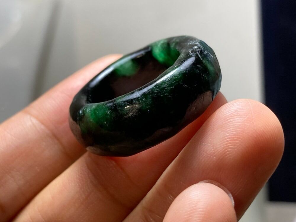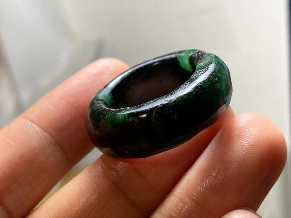 L6-228 一点物 黒緑 17.0号 ミャンマー産天然 A貨 本翡翠 くりぬき リング