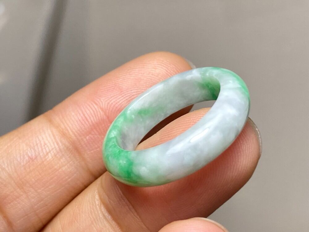 L6-235 美品 白底陽緑 16.0号 ミャンマー産天然 A貨 本翡翠 くりぬき リング
