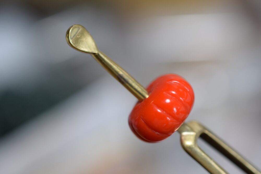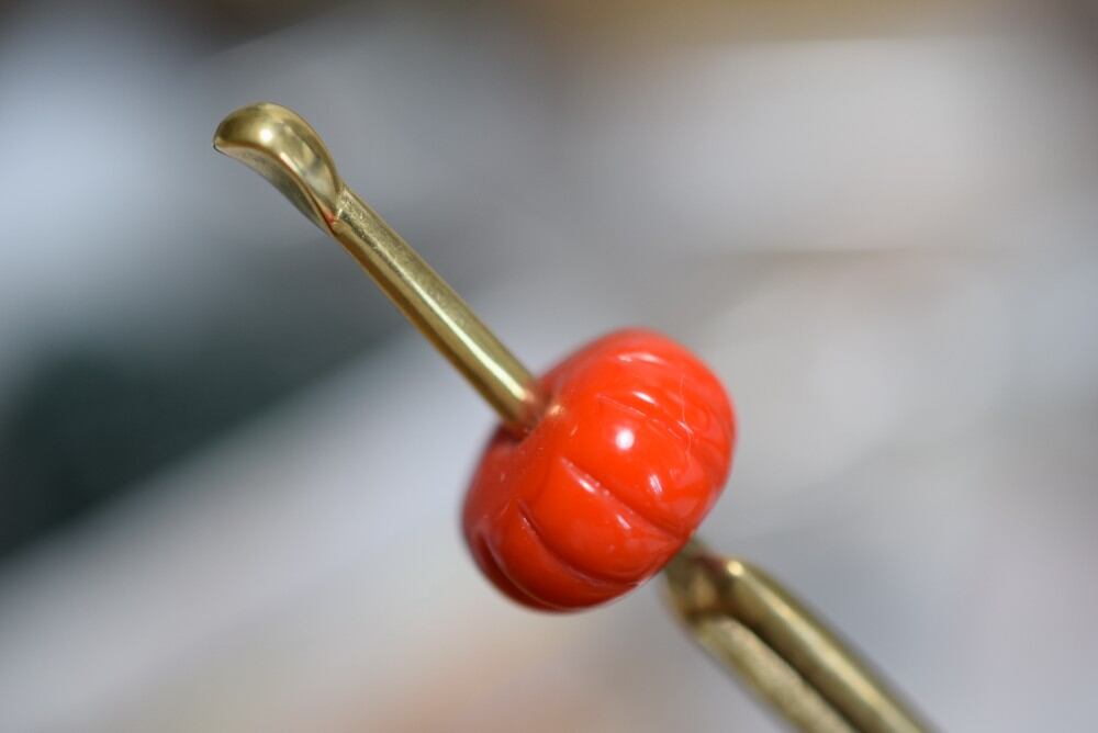 KZ4-31 珊瑚珠色 簪 一点物 小玉 七宝るり玉 とんぼ玉 七宝瑠璃玉 昭和風 二本軸 定番タイプ かんざし