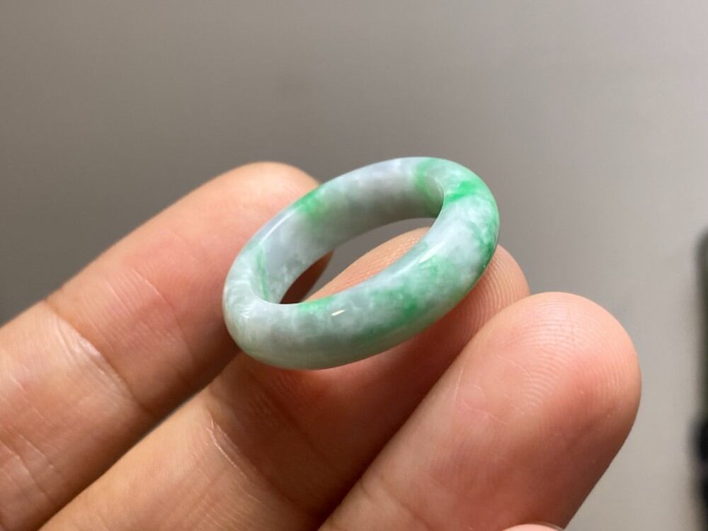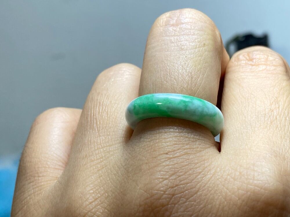 L7-02 美品 白底陽緑 13.5号 ミャンマー産天然 A貨 本翡翠 くりぬき リング