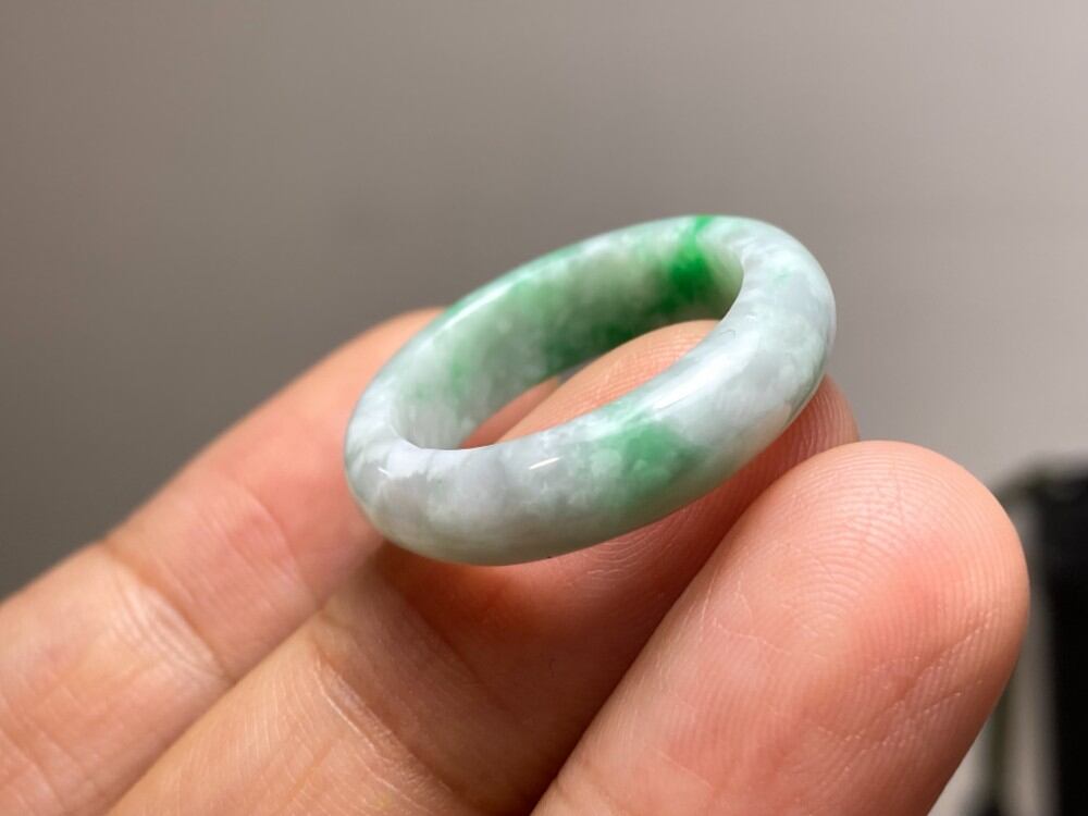 L7-01 美品 白底陽緑 16.5号 ミャンマー産天然 A貨 本翡翠 くりぬき リング