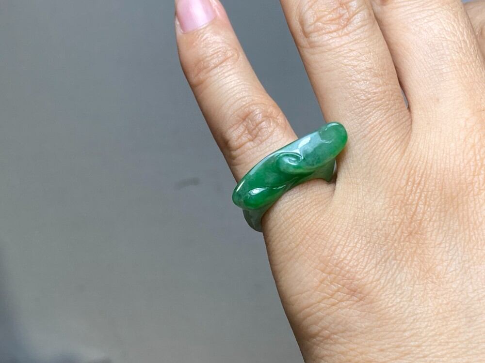 L7-22 上品 3.5号 氷種 ミャンマー産 天然A貨本翡翠 濃緑 如意 くりぬき リング