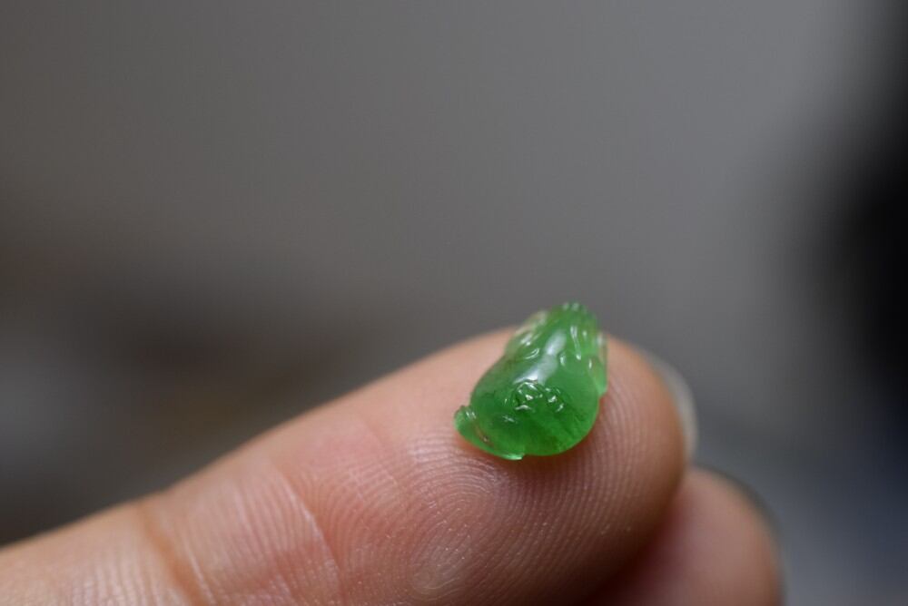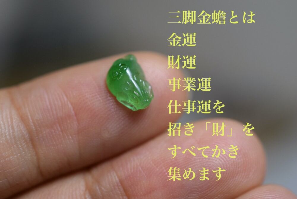 ミニ 三脚金蟾 宝石質 氷種 果陽緑 ミャンマー産天然 A貨 本翡翠 ルース( 硬玉 、ジェダイト、含浸処理なし