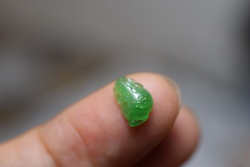 RS7-87 ミニ 三脚金蟾 宝石質 氷種 果陽緑 ミャンマー産天然 A貨 本翡翠 ルース 裸石 硬玉 ジェダイト