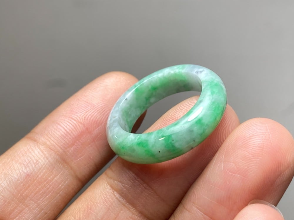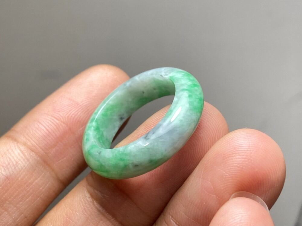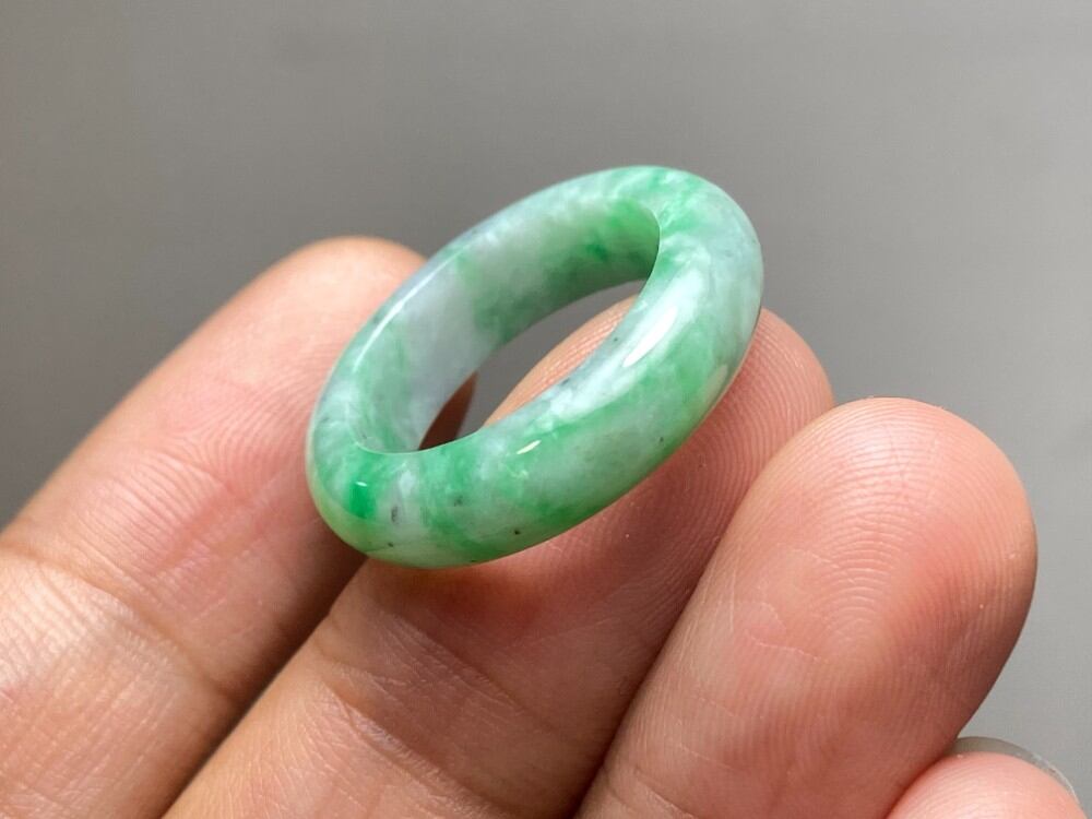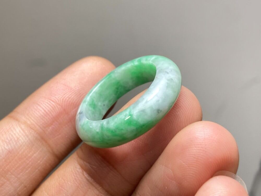 L7-34 美品 白底陽緑 13.5号 ミャンマー産天然 A貨 本翡翠 くりぬき リング