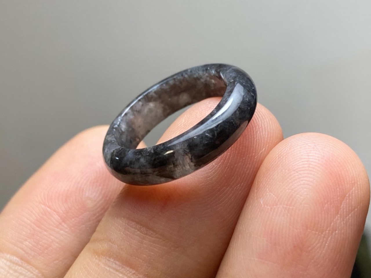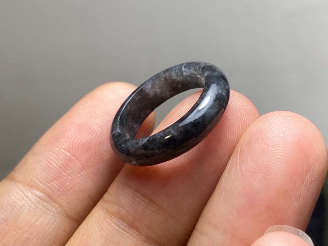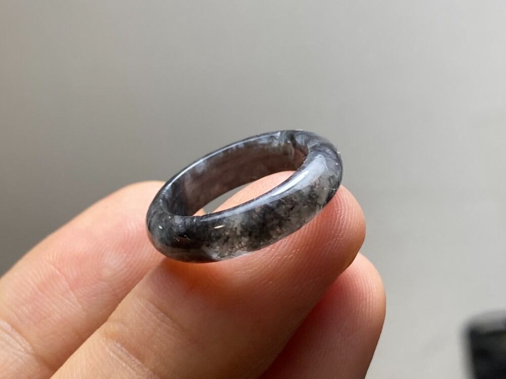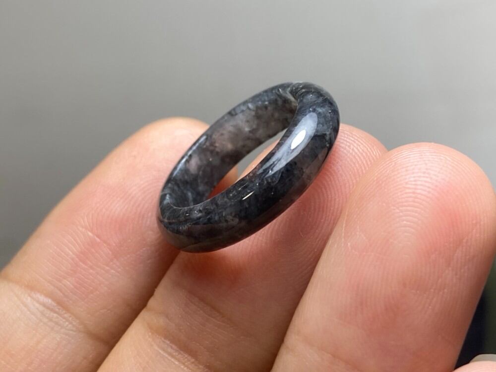 L7-49 小指 黒翡翠 8.0号 ミャンマー産天然 A貨 本翡翠 くりぬき リング