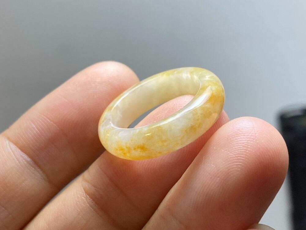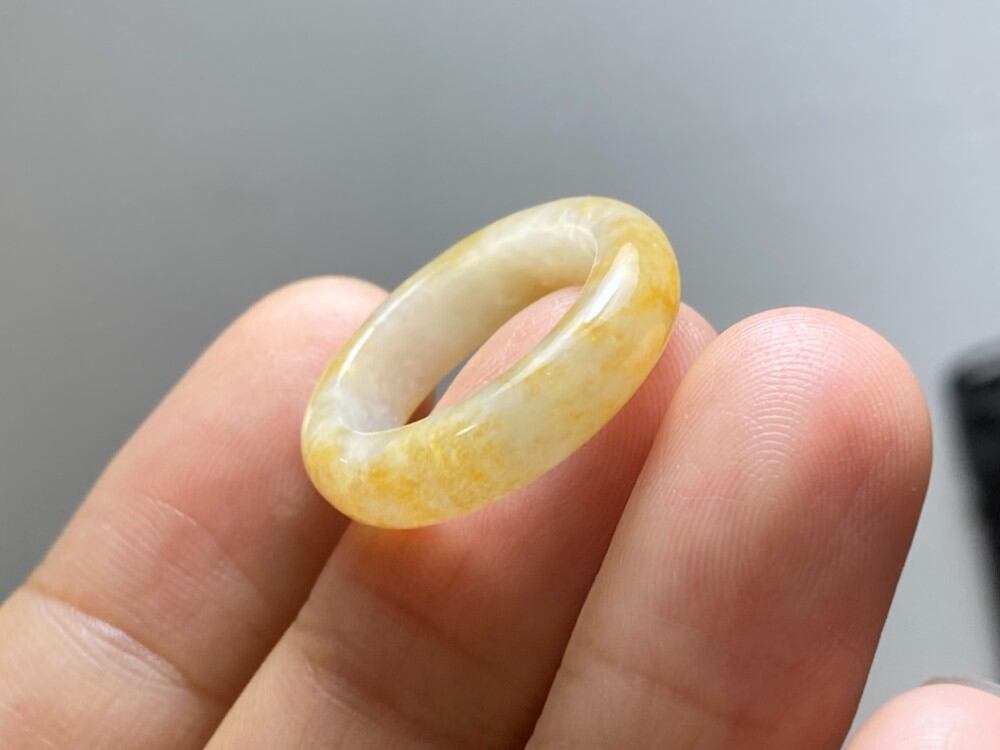 L7-54 美品 黄翡翠 11.0号 ミャンマー産天然 A貨 本翡翠 くりぬき リング