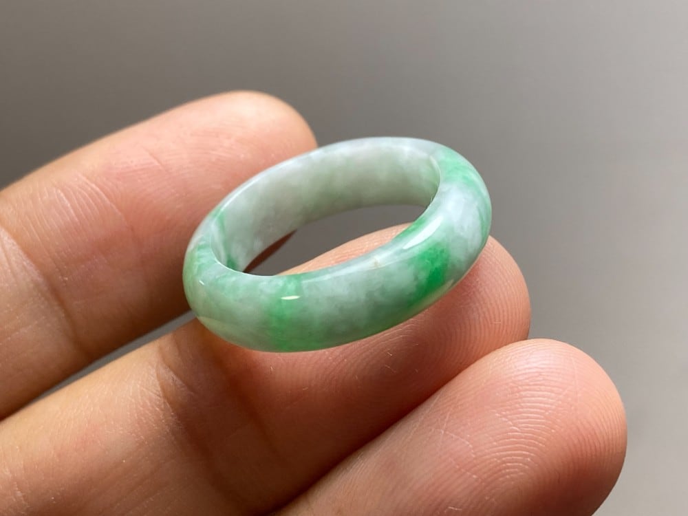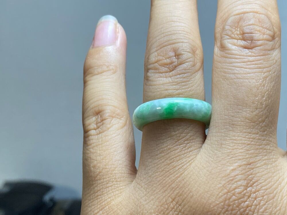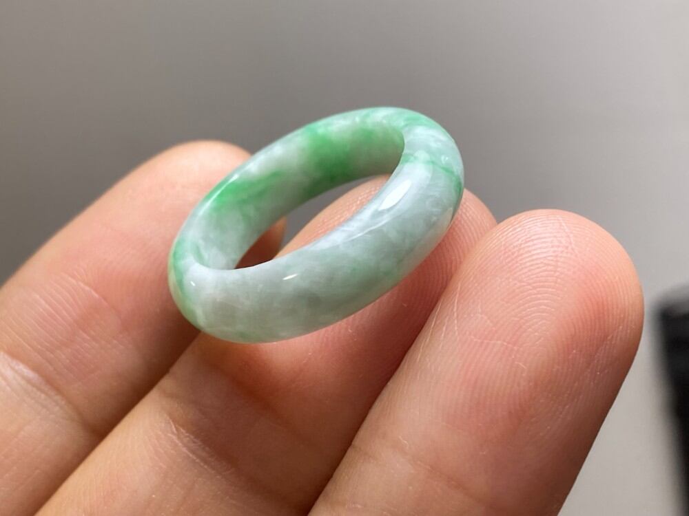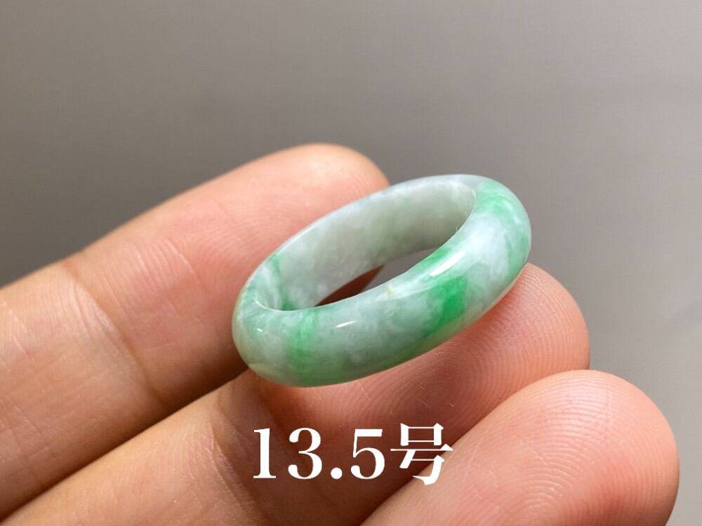L7-51 美品 白底陽緑 13.5号 ミャンマー産天然 A貨 本翡翠 くりぬき リング