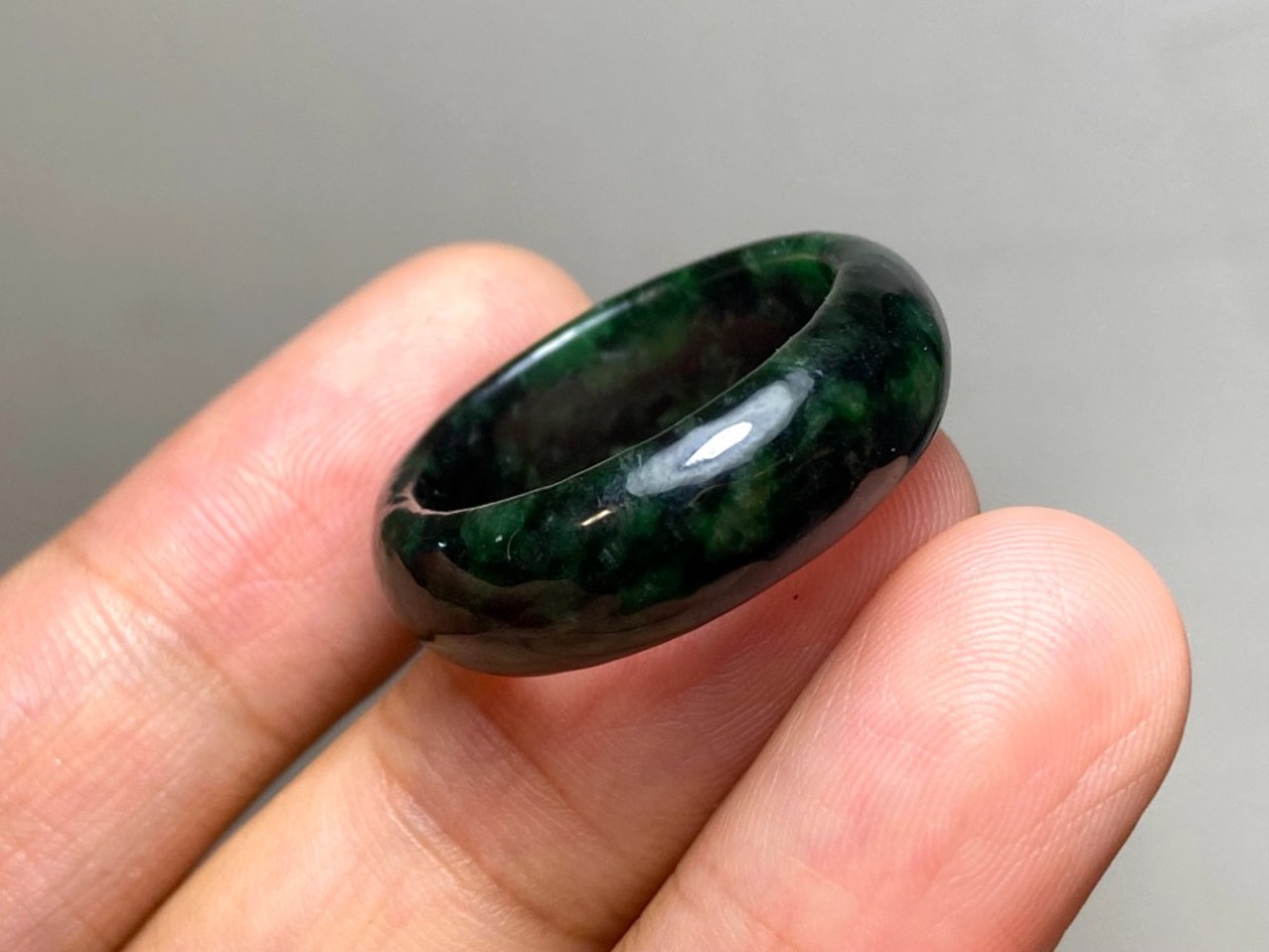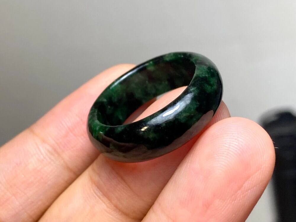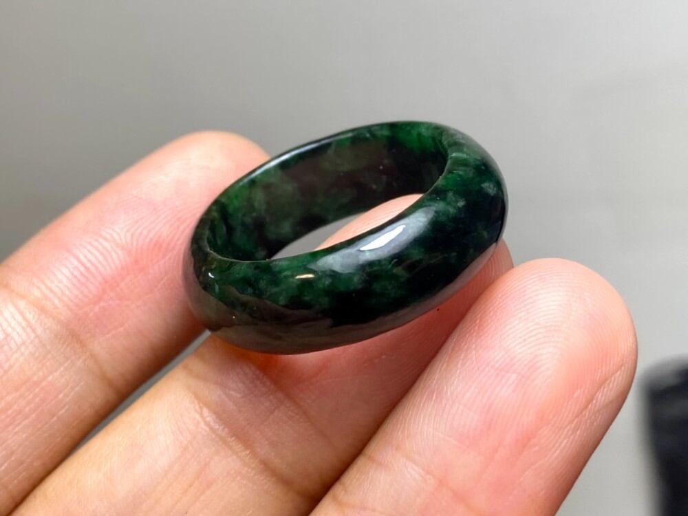 L7-58 一点物 墨緑色 19.5号 ミャンマー産天然 A貨 本翡翠 くりぬき リング
