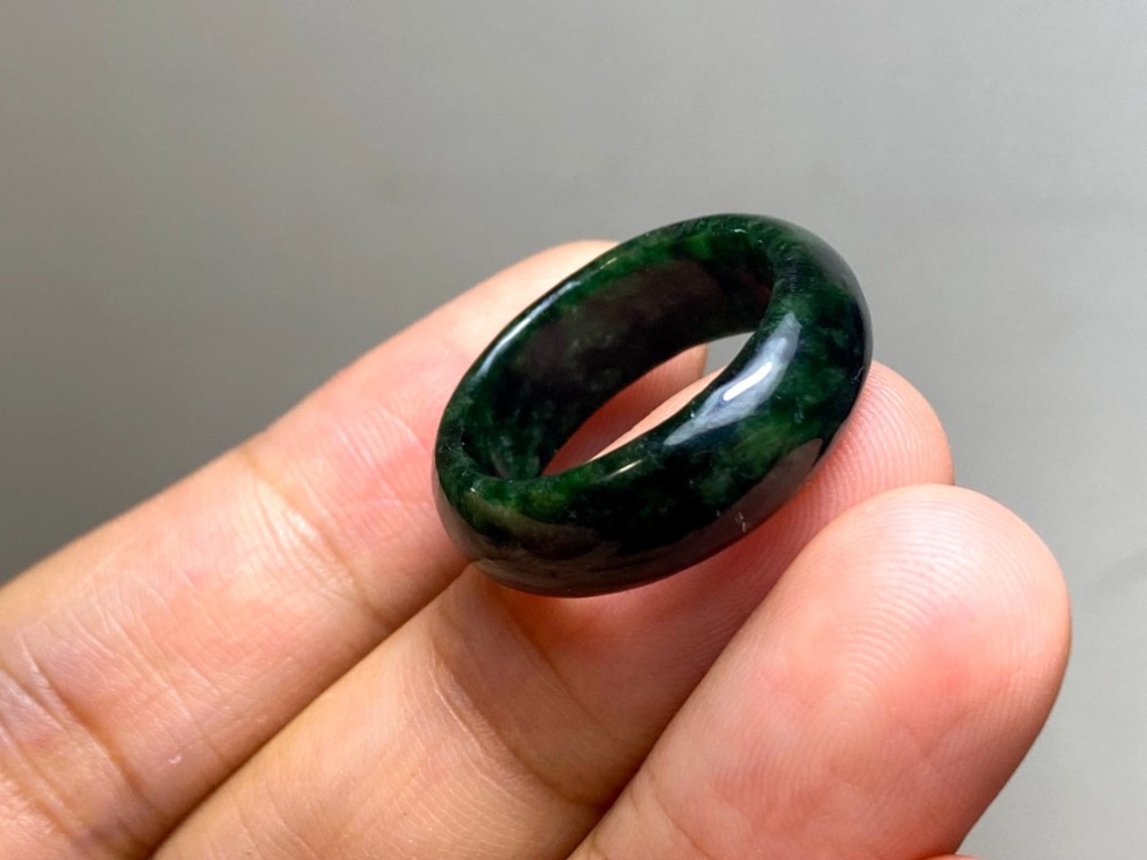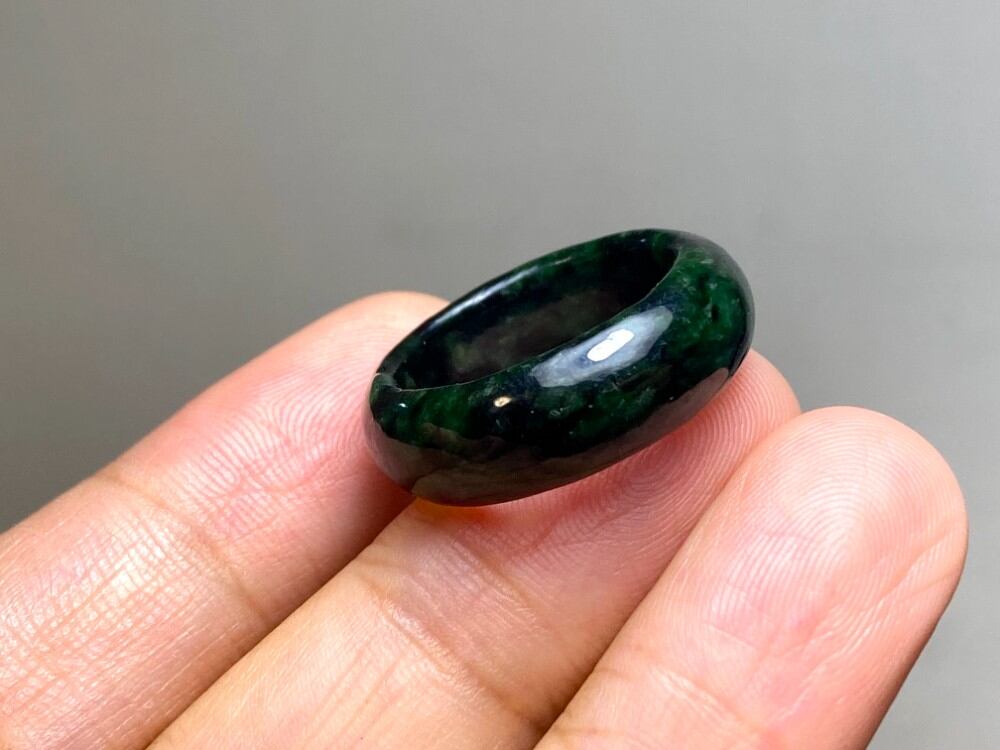 L7-57 一点物 墨緑色 13.5号 ミャンマー産天然 A貨 本翡翠 くりぬき リング