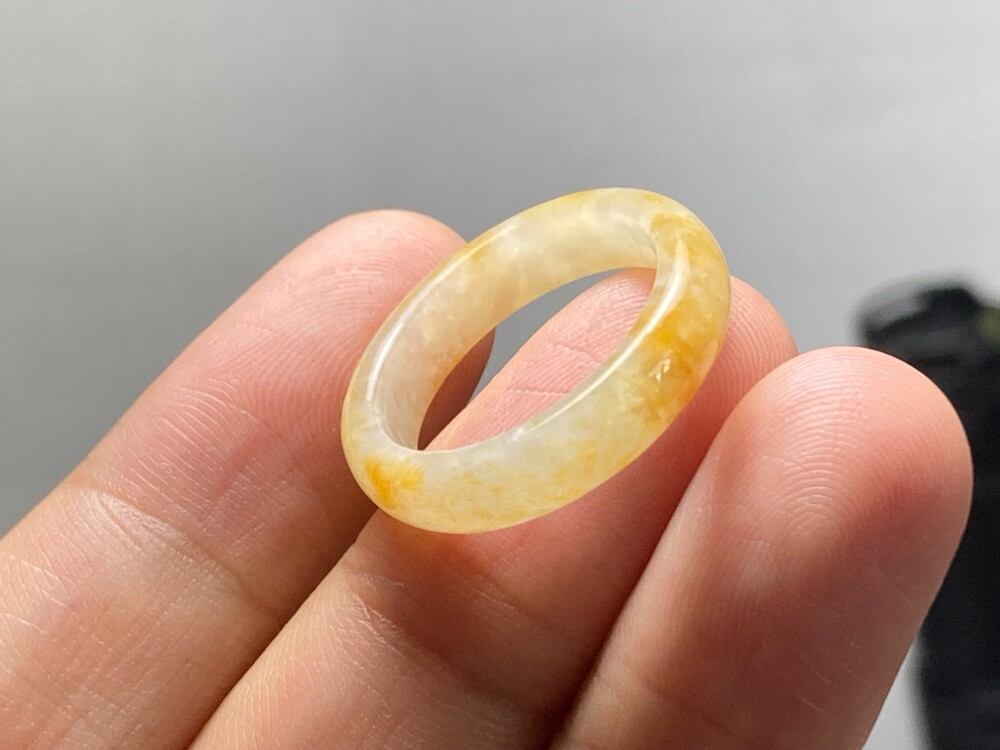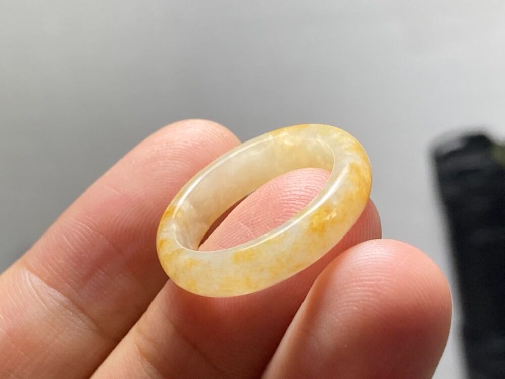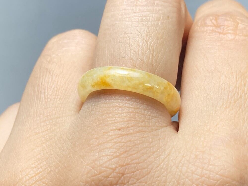 L7-65 上品 黄翡翠 14.0号 ミャンマー産天然 A貨 本翡翠 くりぬき リング
