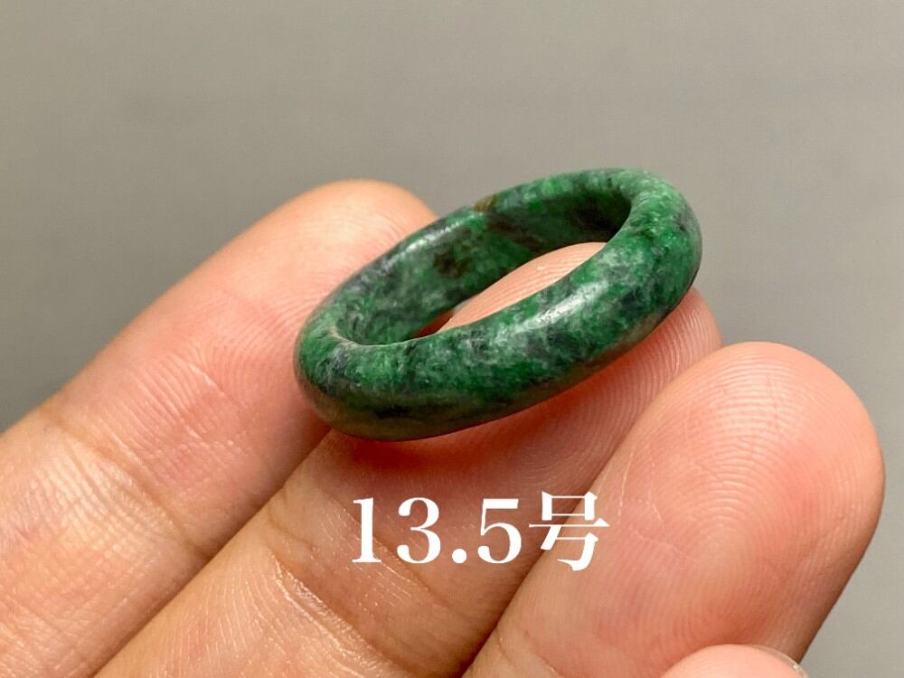 L7-66 艶消し 干青 黒緑 13.5号 ミャンマー産天然 A貨 本翡翠 くりぬき リング