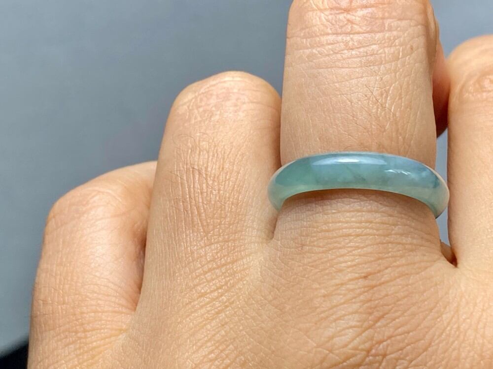 L7-70 薄藍緑 15.5号 天然グアテマラ産 A貨 本翡翠 くりぬき リング