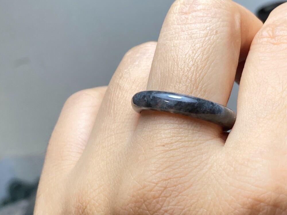 L7-80 美品 黒翡翠 20.0号 ミャンマー産天然 A貨 本翡翠 くりぬき リング