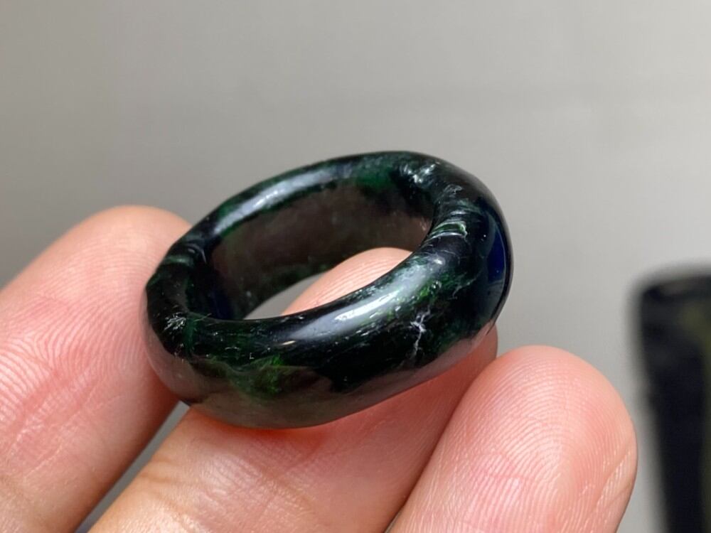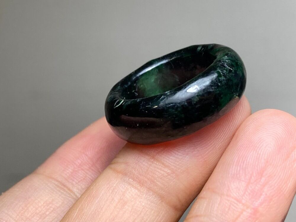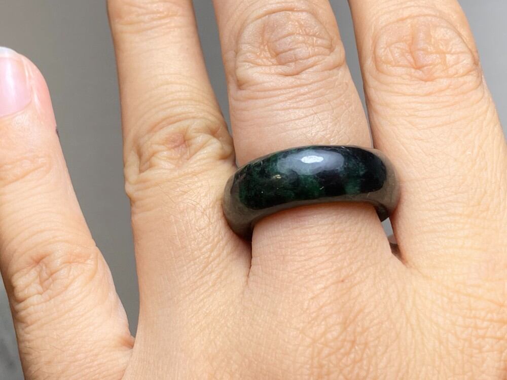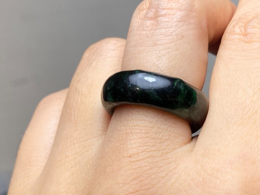 L7-81 一点物 墨緑 13.5号 ミャンマー産天然 A貨 本翡翠 くりぬき リング