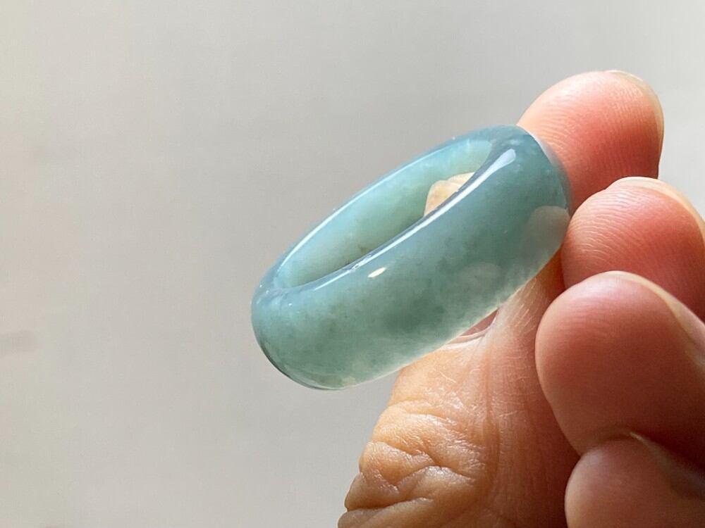 天然グアテマラ産 藍水 A貨 本翡翠 くりぬき リング